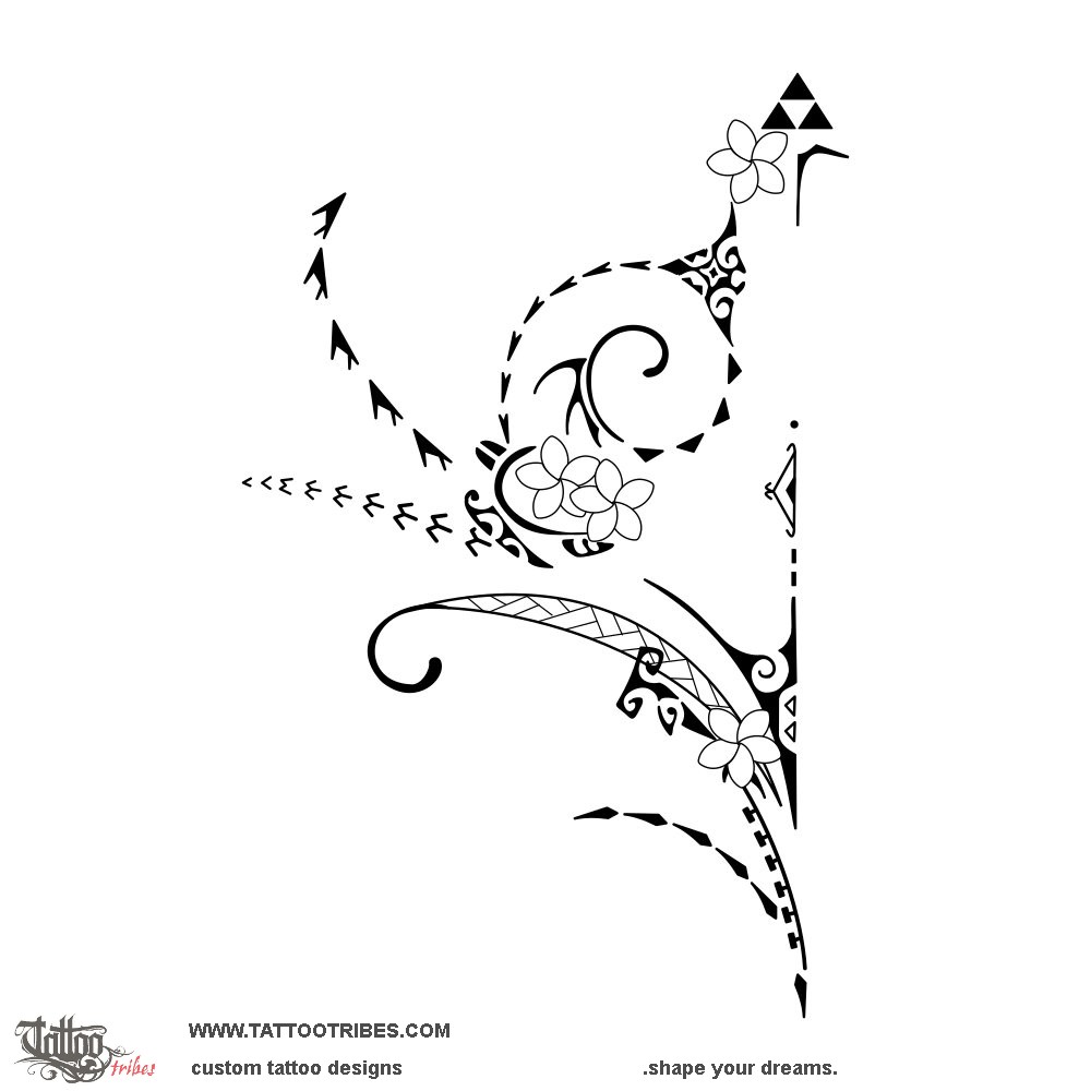 This feminine Polynesian tattoo for the back was prepared for Sarah and it represents her story.