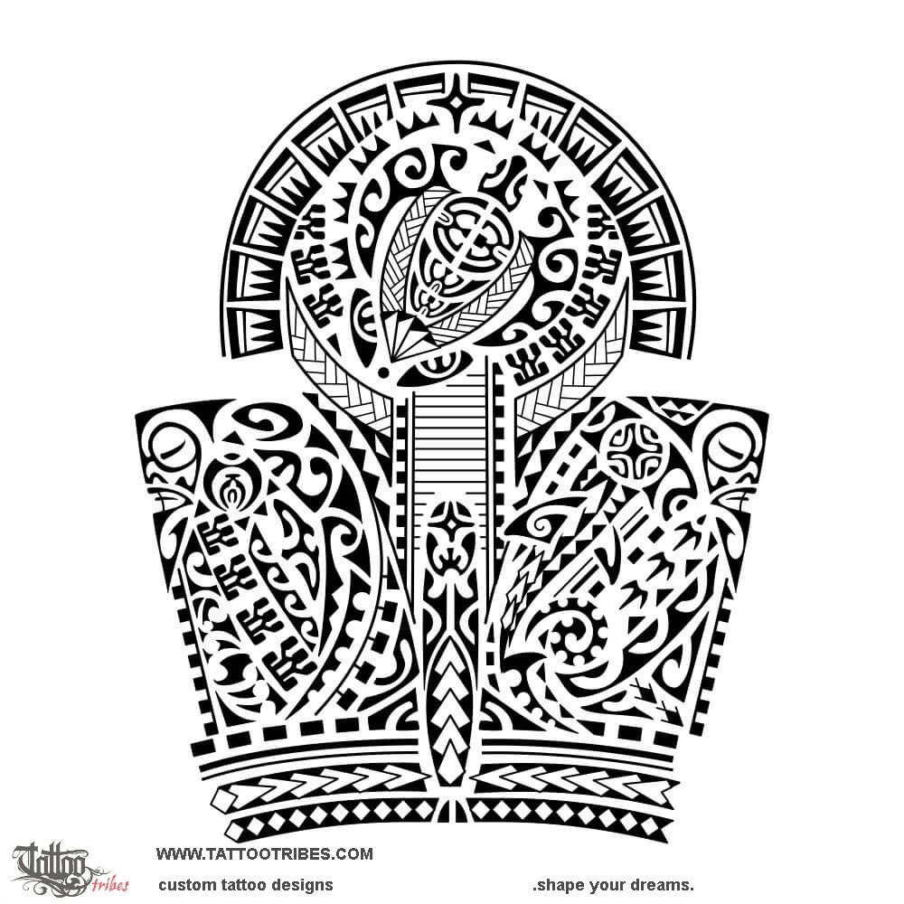 Polynesian tattoos explainedThis Polynesian half sleeve tattoo was prepared for Russ, with a turtle being central to symbolize family, showing him and his wife as the couple in the middle of the shell, and their daughter and son below them, all joined together by braids and flax leaves for family unity.