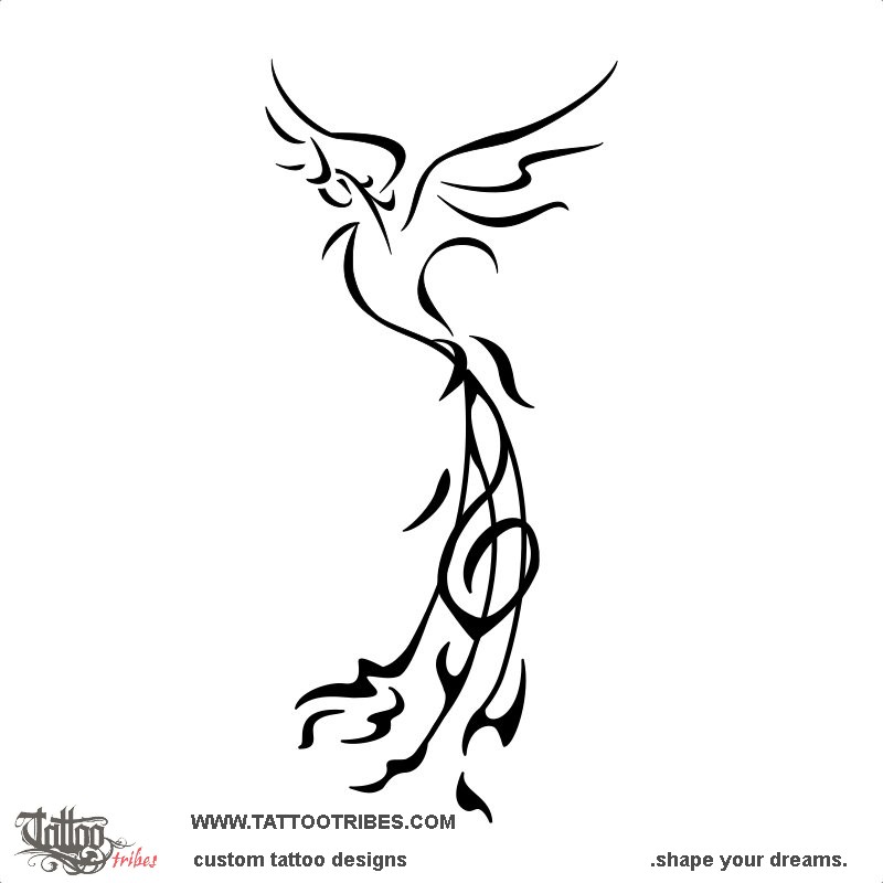 This small phoenix tattoo was prepared for Diana, and it has a treble clef disguised in the tail to symbolizes rebirth by music