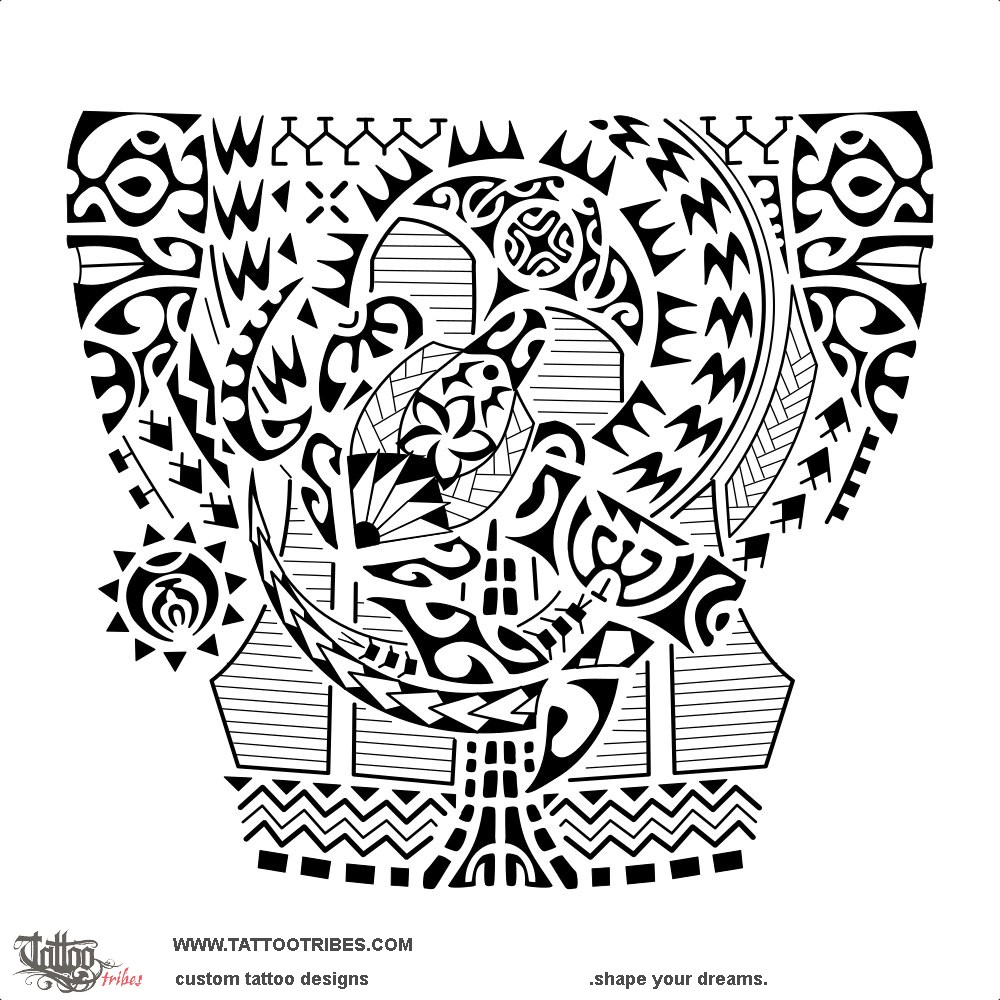 We prepared two forearm band sleeve Polynesian tattoos for Threveshen to tell his story: this tattoo for the right arm about family, represented by the central turtle, protected by the hammerhead shark representing him (tenacity, determination, with a warrior and spearheads inside to symbolize courage and strength), and this other tattoo for the left arm about the union of two families.