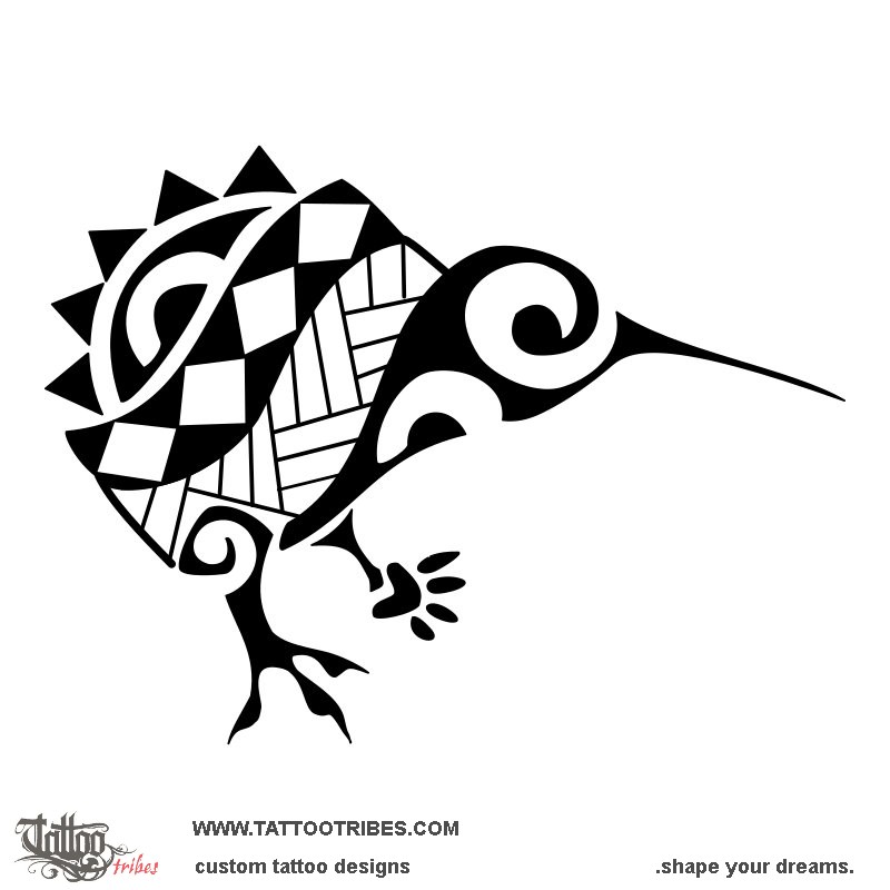 This small Polynesian styled kiwi bird tattoo was prepared for Lee in memory of his dog Kiwi (one foot is shaped like a dog paw).