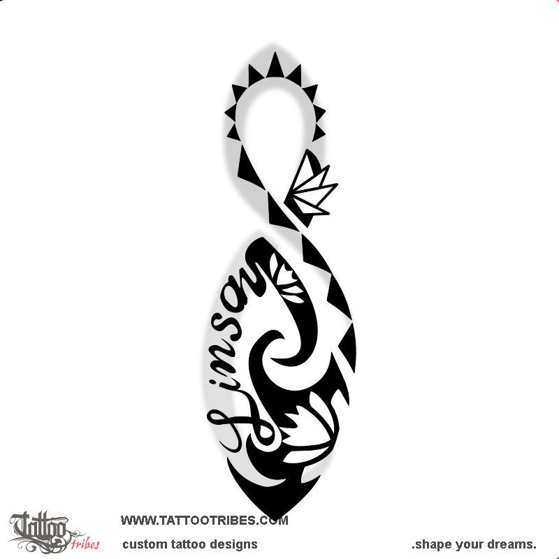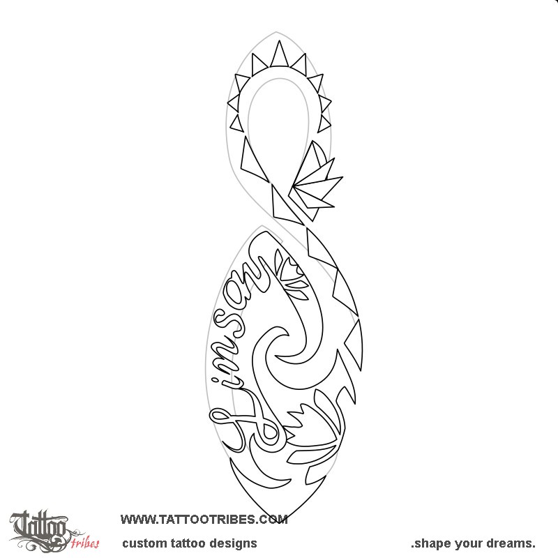 This small tattoo was requested by Dean and it had to include some specific elements, like the name Linsay and two lotus flowers, in the shape of a pikorua, a double twist.