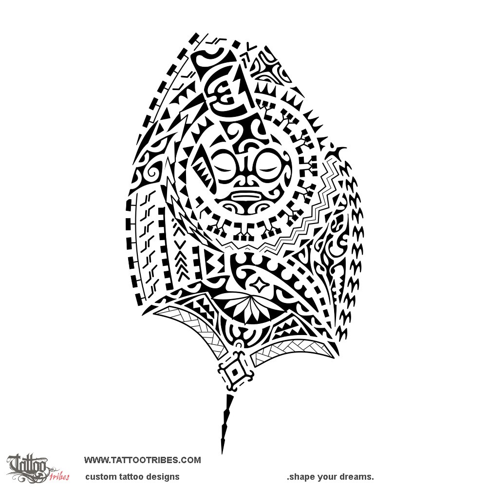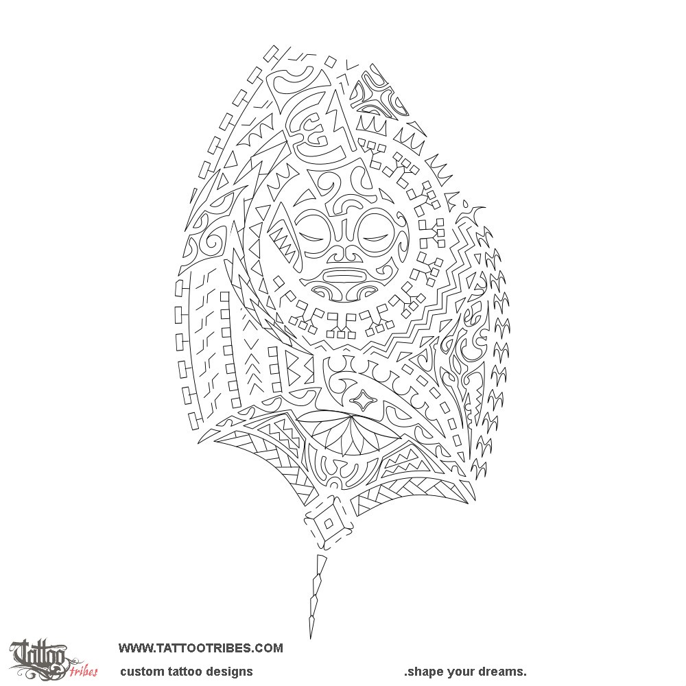 Polynesian tattoos explainedThis Polynesian tattoo prepared for Enrico was designed to fit the thigh going down on the side of the knee with the tail of the manta that closes the lower part.