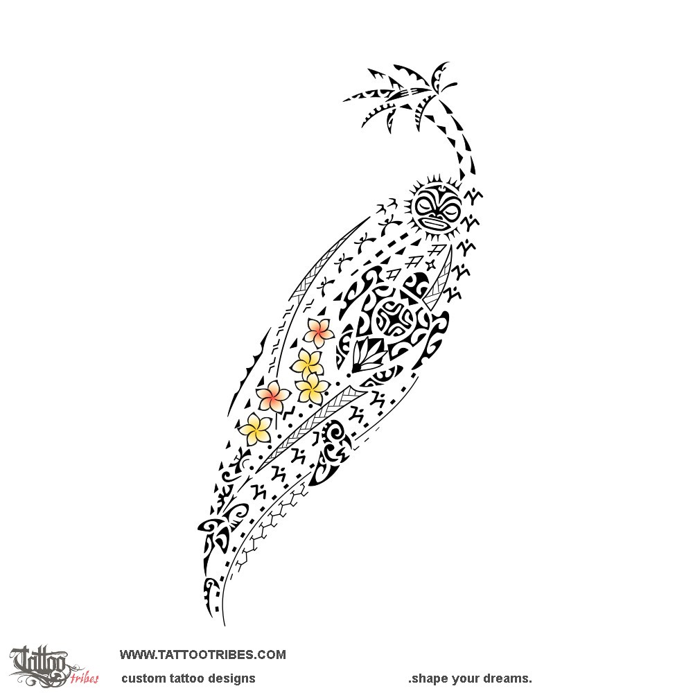 The turtle for family remains central being the most important thing for her, with flax leaves for union and a Marquesan cross among waves to symbolize how family gives her harmony and stability through every change.