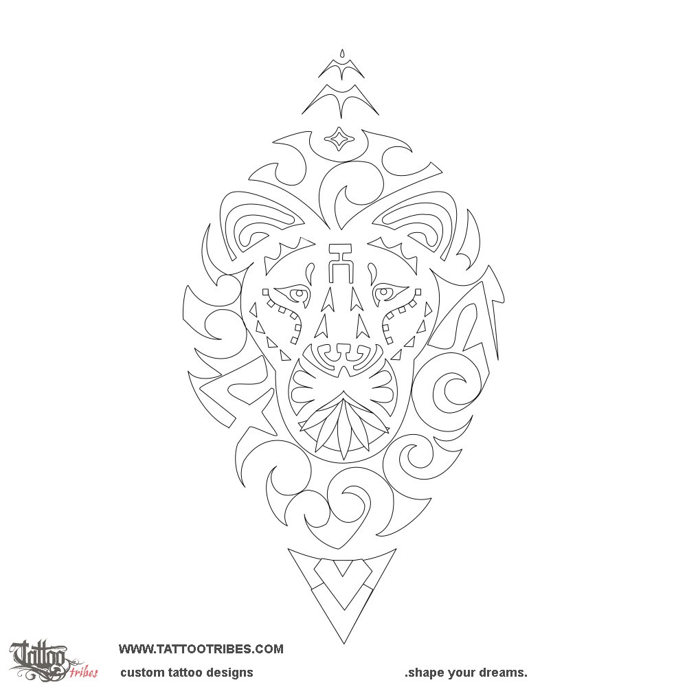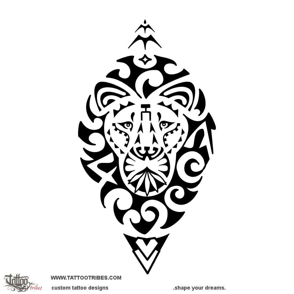 This tribal lion head tattoo with Polynesian elements was prepared for Marcel to celebrate the birth of his second daughter (a lion).