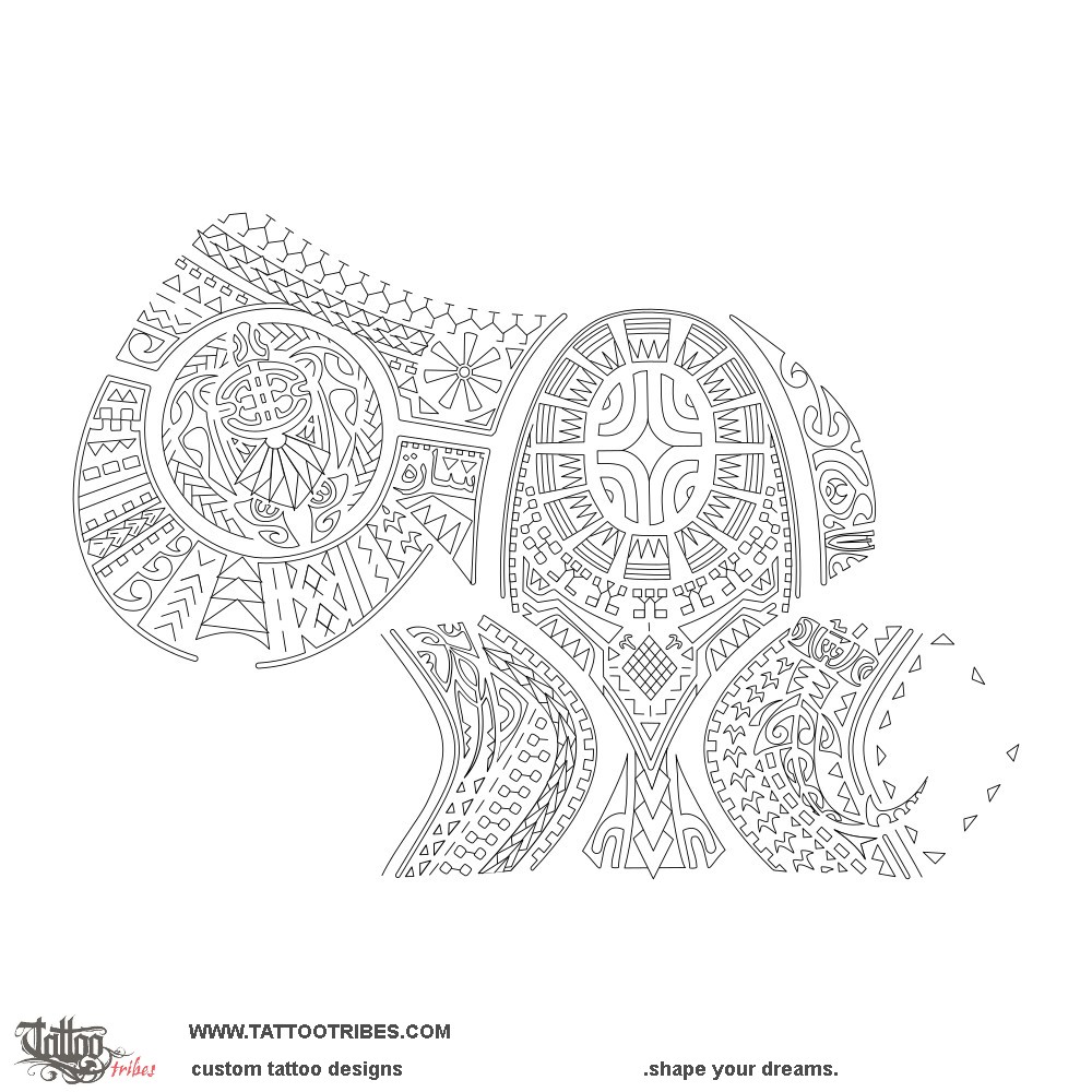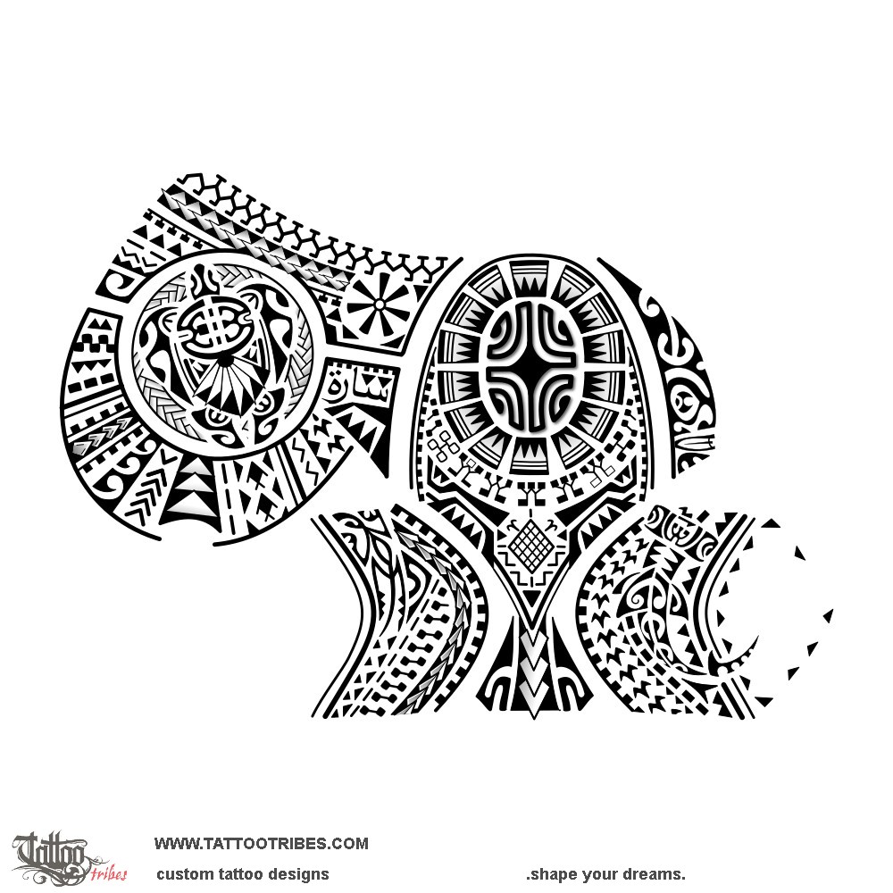 This allowed to keep the shoulder and outer arm part shaped as a mere, which is a symbol representing a chief, a leader, honor, and respect, and we placed a row of people inside of it, each one different from the other, with a Marquesan cross above them and a net below to symbolize how harmony between all cultures (all different people) is the way to bring prosperity and peace to them (coconut leaves shaping a sun, and the net).