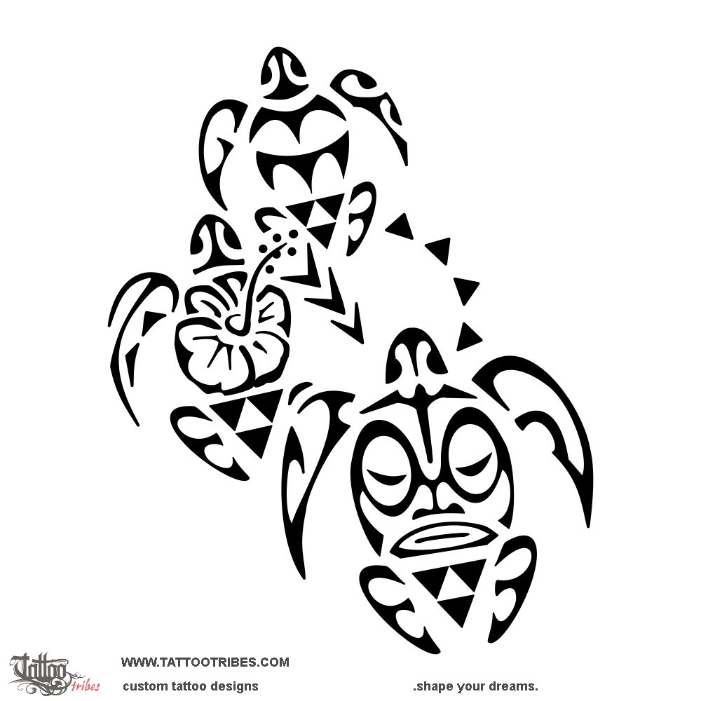 This Polynesian family tattoo of three turtles includes several Hawaiian symbols to honor Dan's roots.
