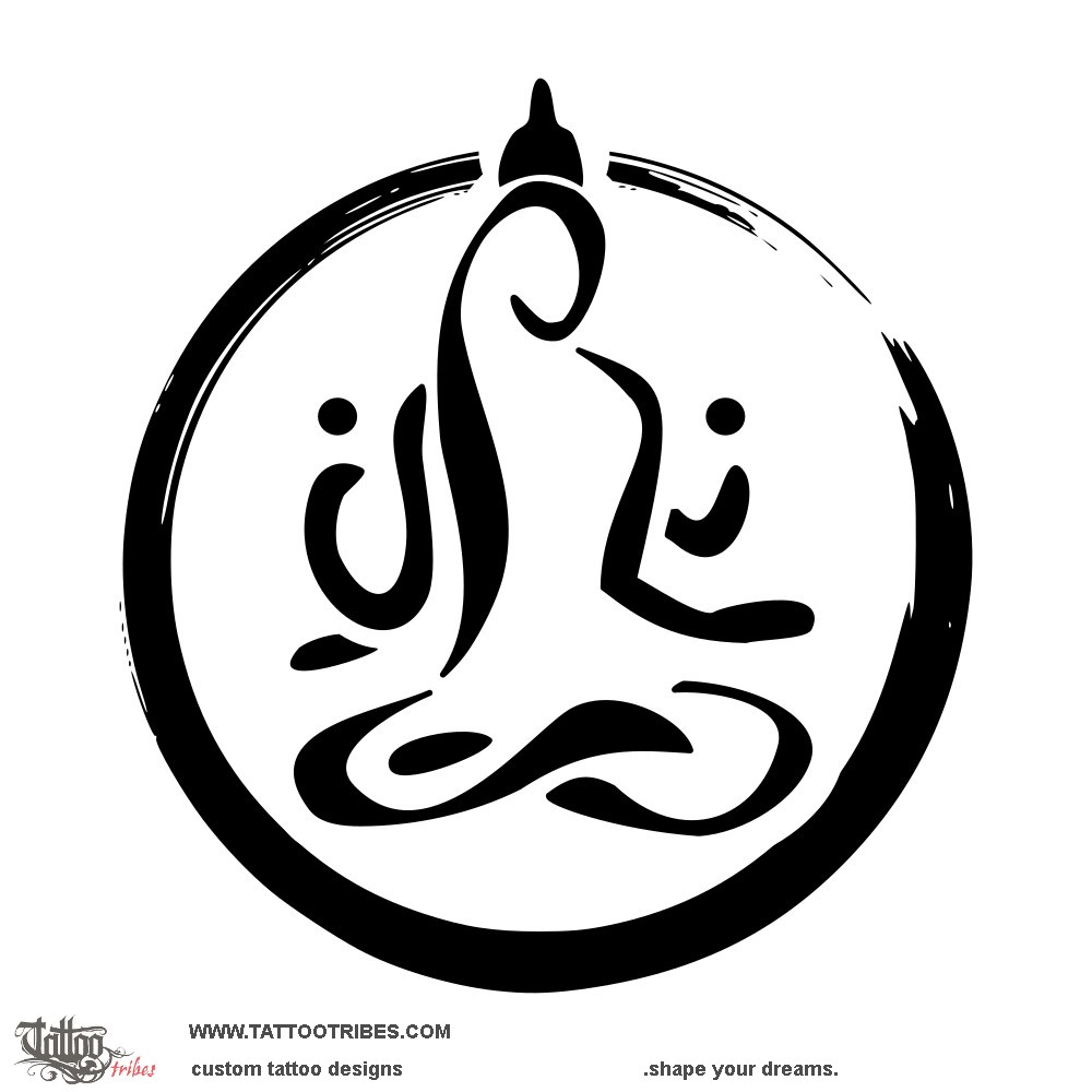 We designed this minimalist image of Lakshmi not as a tattoo but as a logo for Barbara's practice, named in honor of the goddess whom she feels connected to, and we placed her within a circle recalling the enso symbol to represent enlightenment and the interconnectedness of all things, creativity, and the acceptance of imperfection.