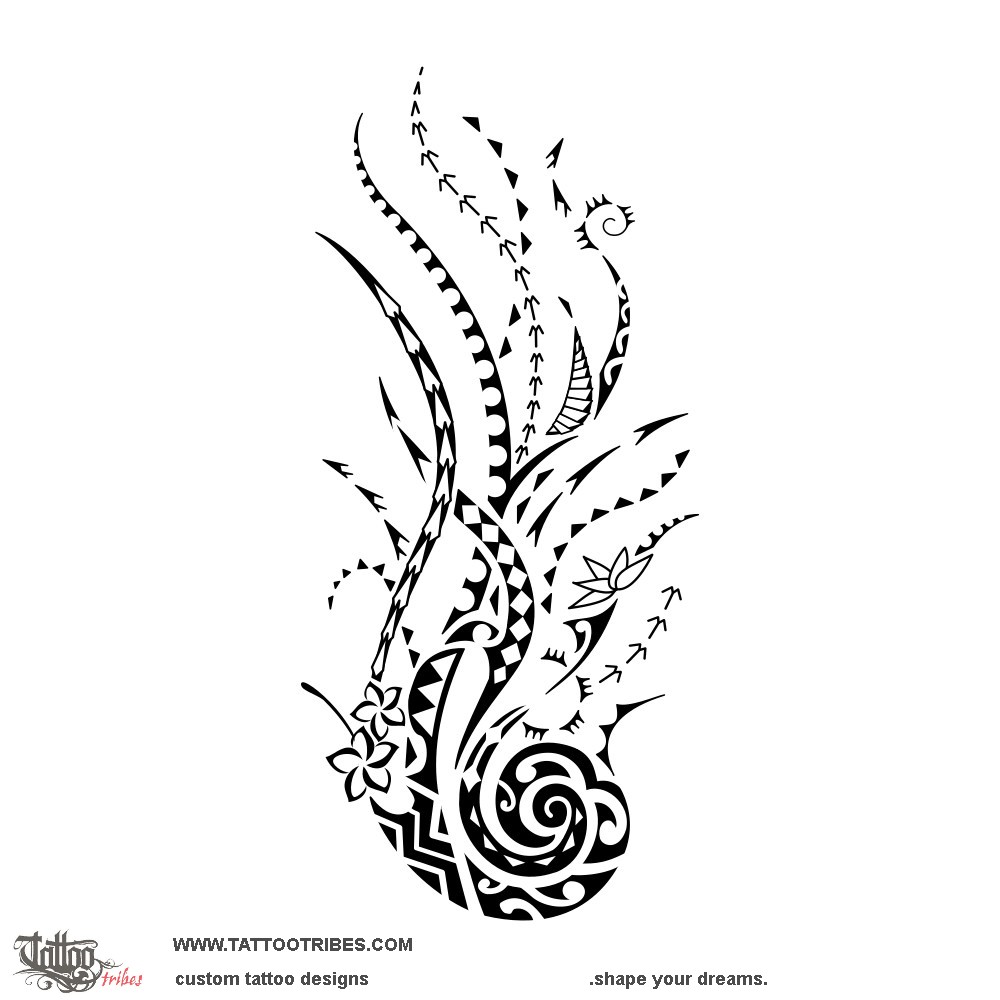Mixed Polynesian flaming koru tattoo