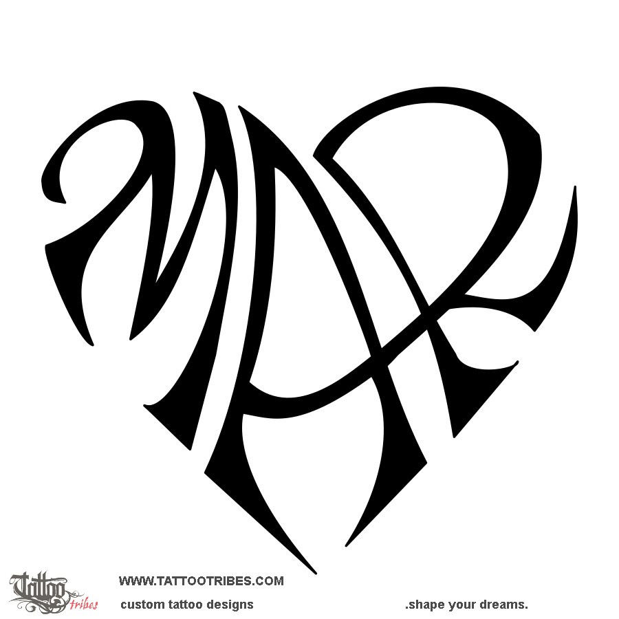 Heart tattoos shaped by initials represent the bond shared with, or by, the people represented by the letters.