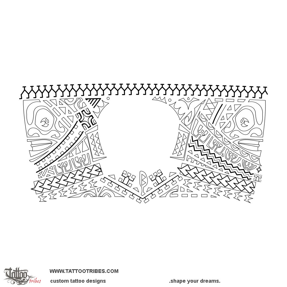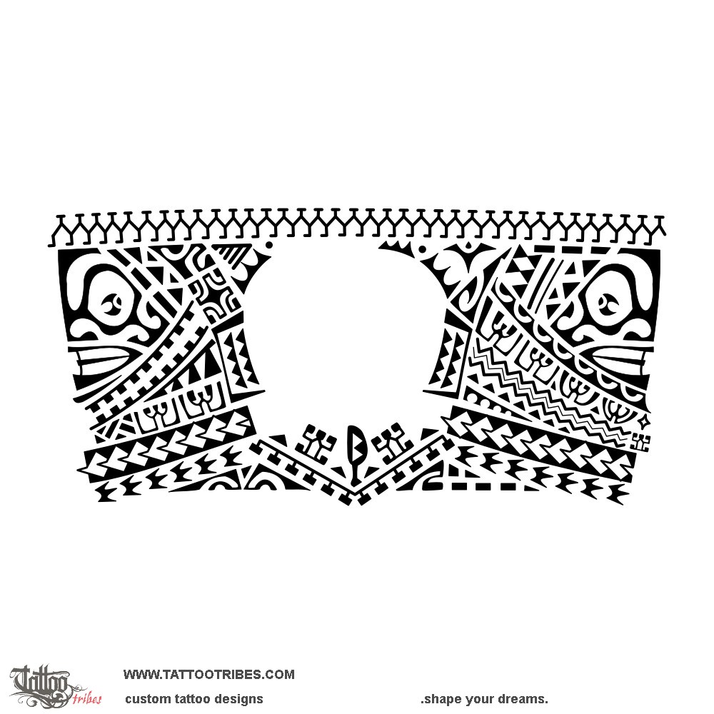 We also added elements of prosperity (fish hook and bonito tail), harmony and balance (the Marquesan cross), and the ends of the belt continue into the rows of spearheads that tie everything together.