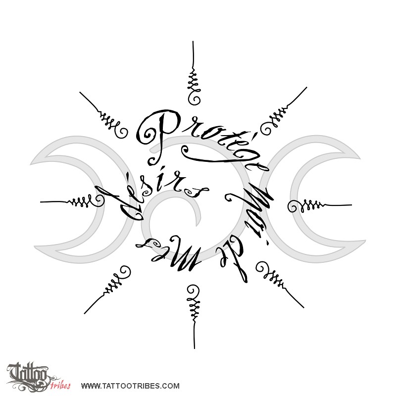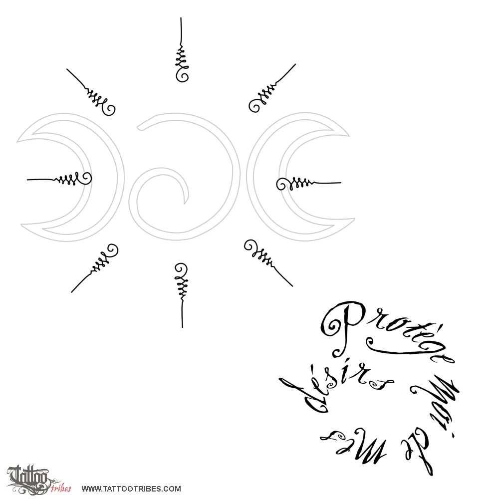 The symbol of the three moons, crescent, full an declining, which is often associated to the triple goddess Brighid, is not a protection tattoo itself, but represents instead the phases o a woman´s life and their sacrality: the crescent moon represents the virgin, and it´s associated to birth, youth, new beginnings and enchantment; the full moon is the mother, and it represents ripeness, sexuality, completeness and life; the declining moon symbolizes old age, wisdom and rest,death and endings.