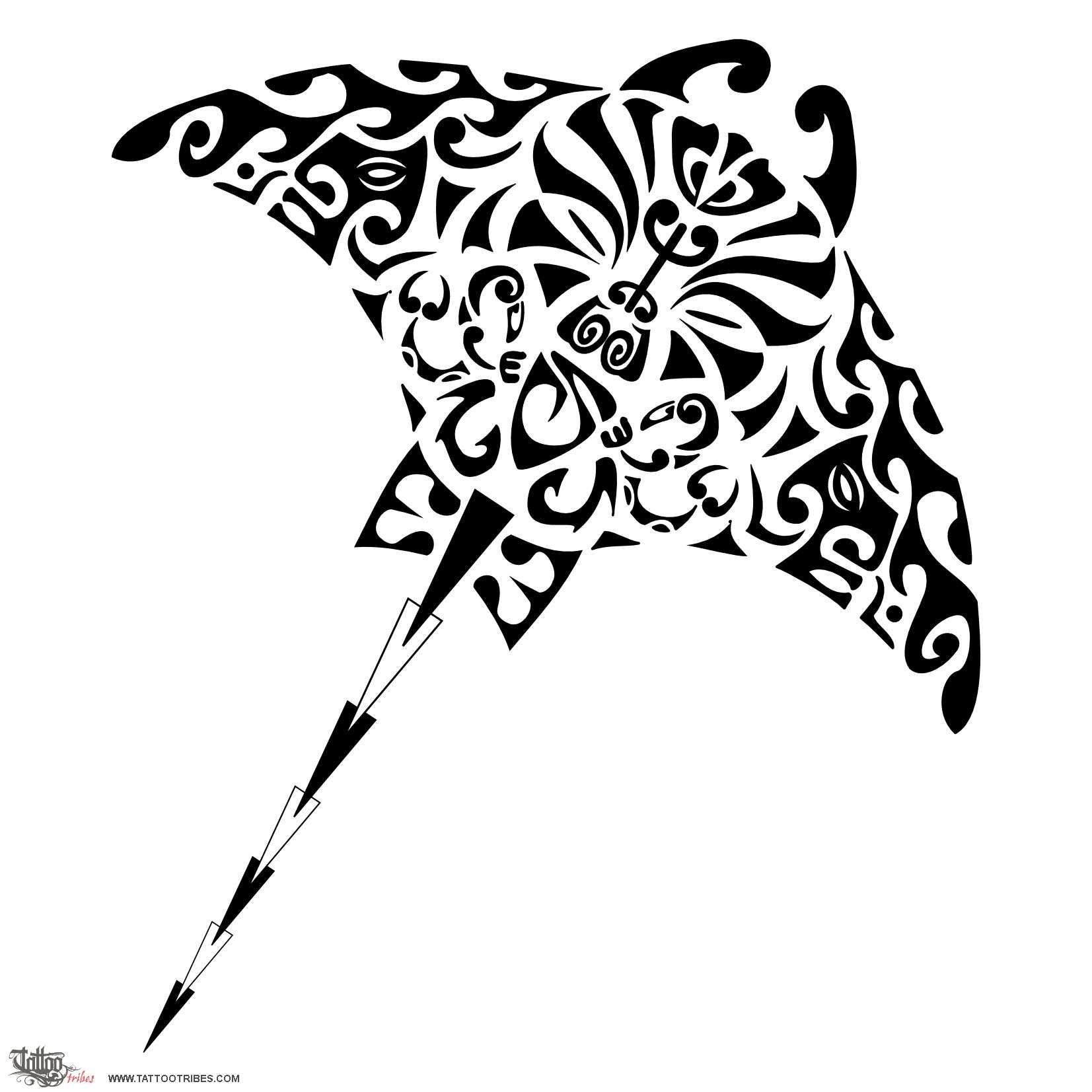 Polynesian tattoos explainedThe manta ray is a symbol of freedom, elegance and harmony, and inside it we placed the warrior and the axe (valiance, fighter), protected by manaias (guardian angels, they symbolize balance and protection over land, sea and air), the twist (love, bond), surrounded by fish hooks (abundance and wealth).