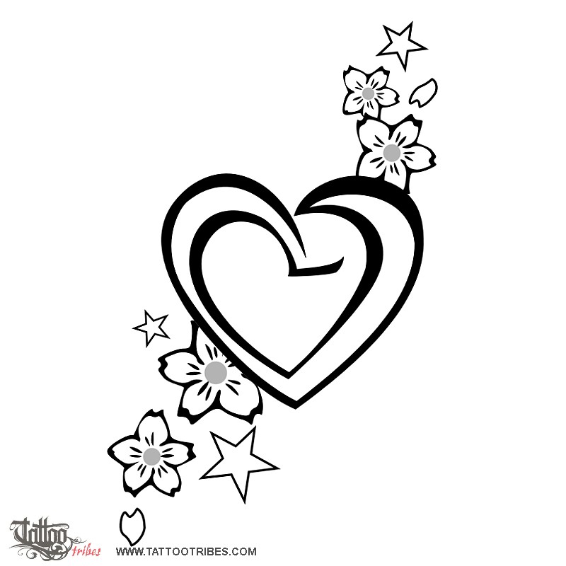 Kacy ha chiesto un disegno che avesse due cuori concentrici con una K ed una L che fossero unite al disegno, con fiori e stelle.