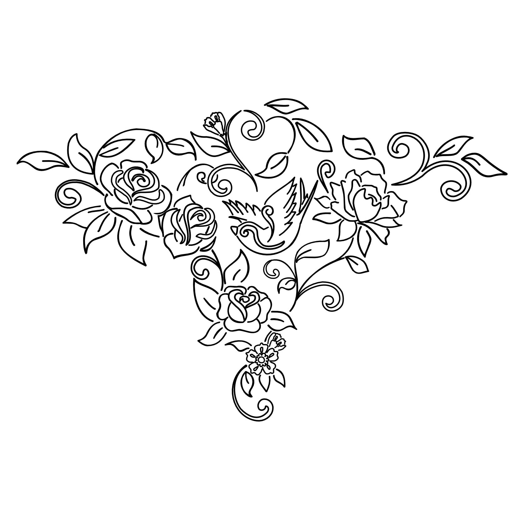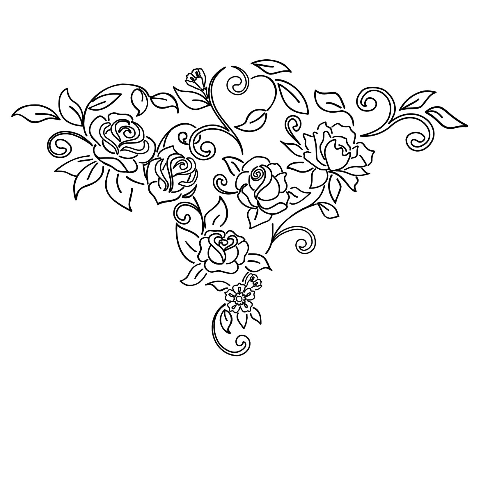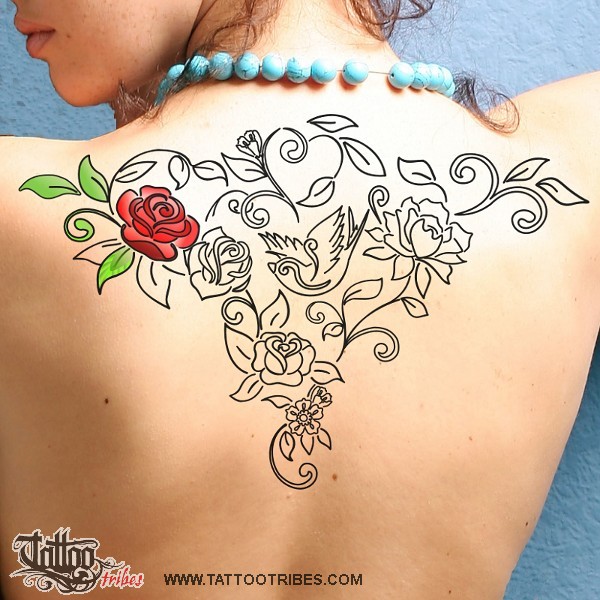 Ashlee requested a composition of old school flowers for her back.