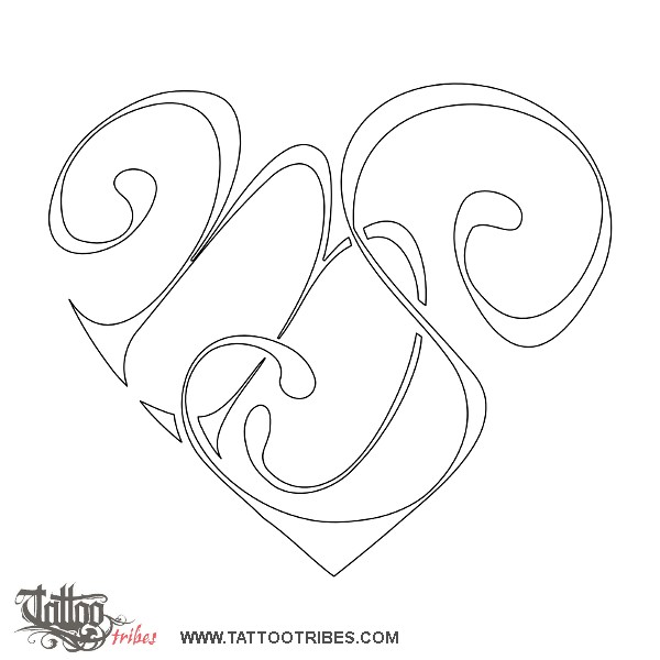 V+W heartigram tattoo photo