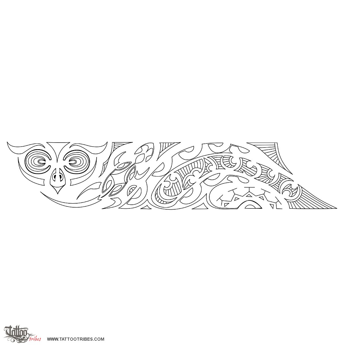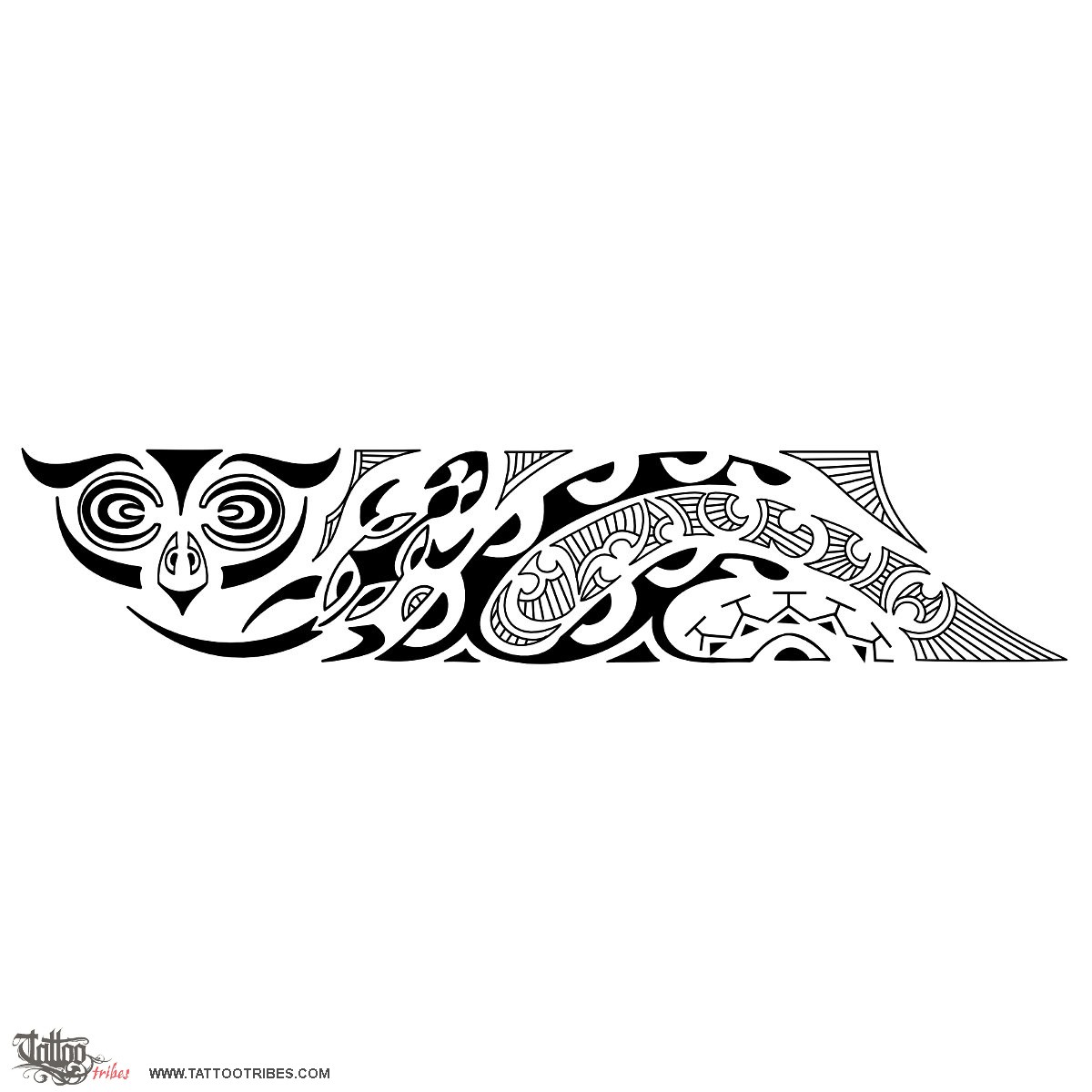 This Maori styled armband was requested by Elia; inside of it are an owl (knowledge), a lizard (luck, life), waves (or ngaru, symbolizing continuity through change) and the maorigram of a name.