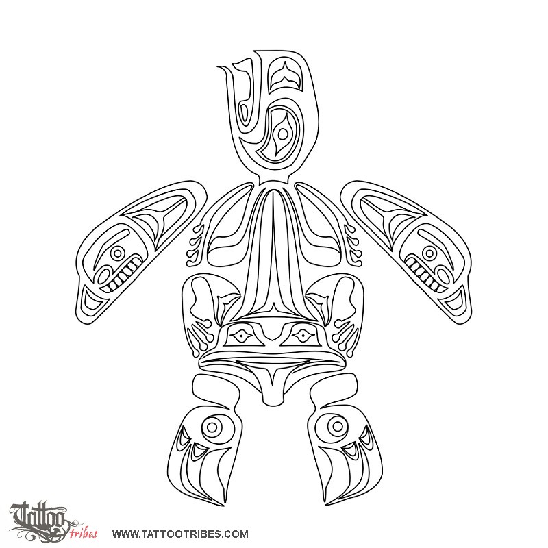 This Haida styled design is based on a request by Sandee, who asked for a turtle with a frog being her shell.