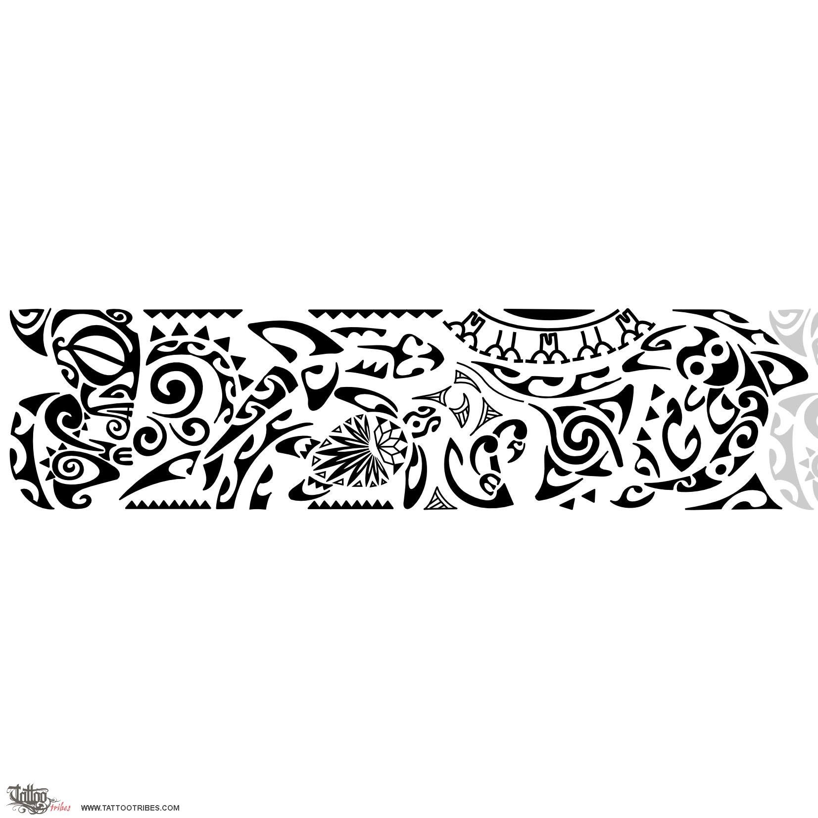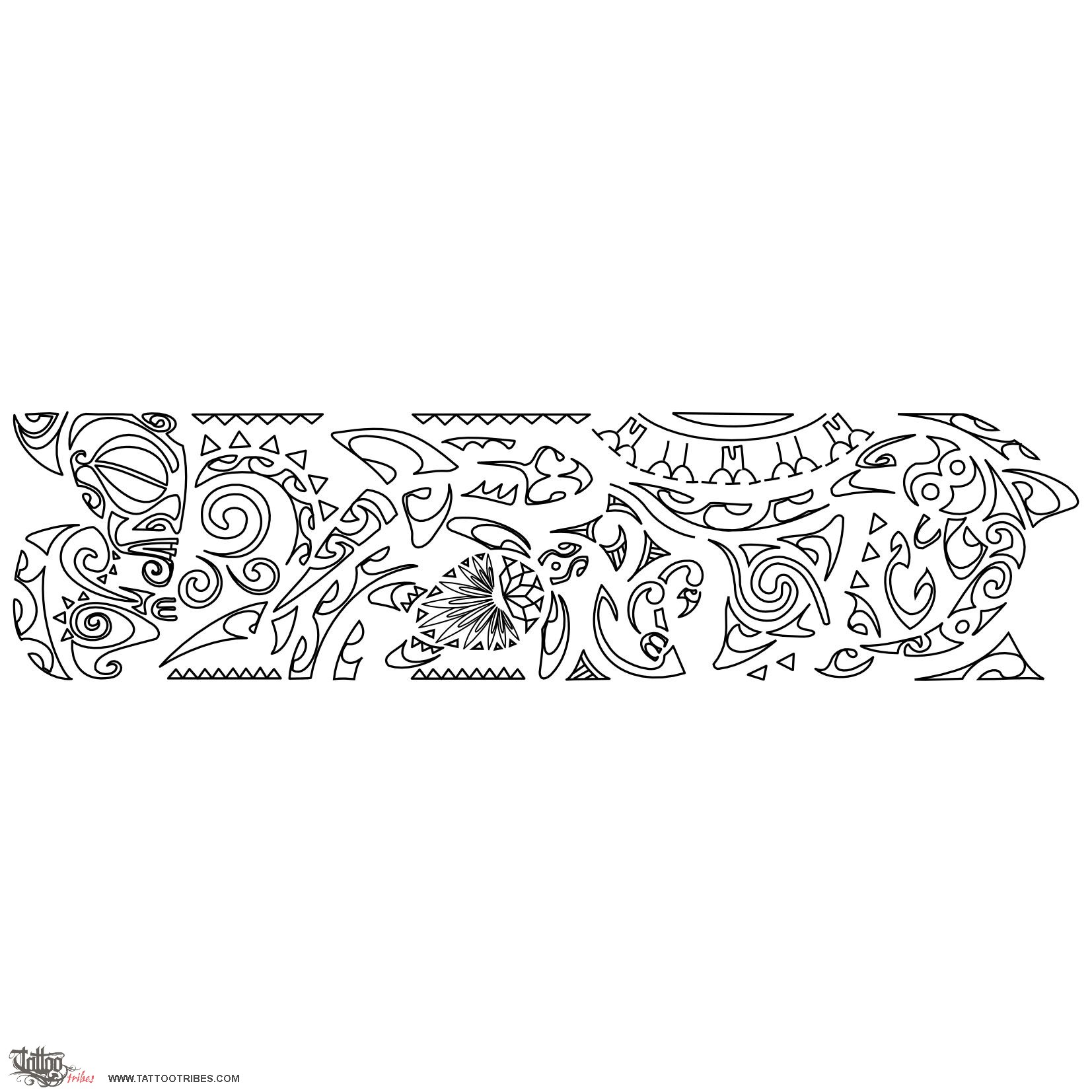 Polynesian tattoos explainedThe tiki on the left (protection and fertility) is the divinity blowing life (korus) into the sea (waves), blessing her inhabitants: shark (adaptability and strength), dolphin (joy and friendship), turtle (family, life).