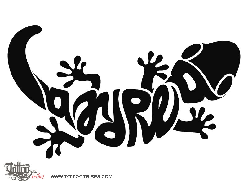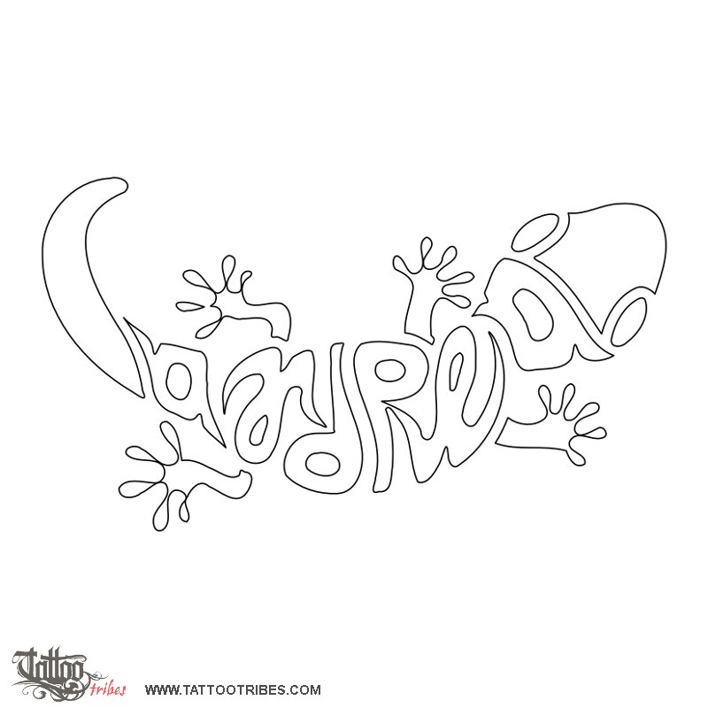Andrea requested this ambigram (that´s a word or sentence written in a way that allows it to be read in several directions) where his name becomes the body of a gecko.