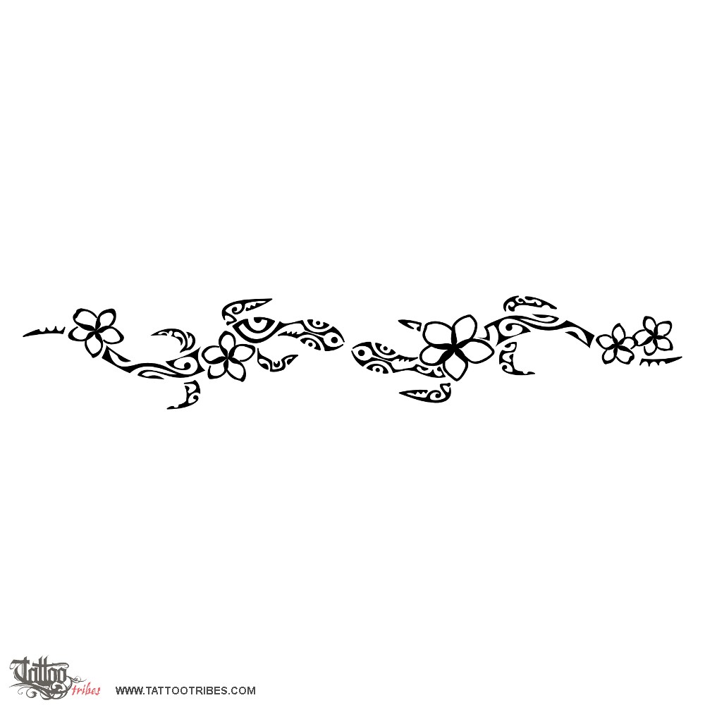 Polynesian tattoos explainedKorus symbolize life and new beginning, and frangipani flowers are symbols of beauty, harmony and protection; the fish hook is a symbol of abundance and prosperity.