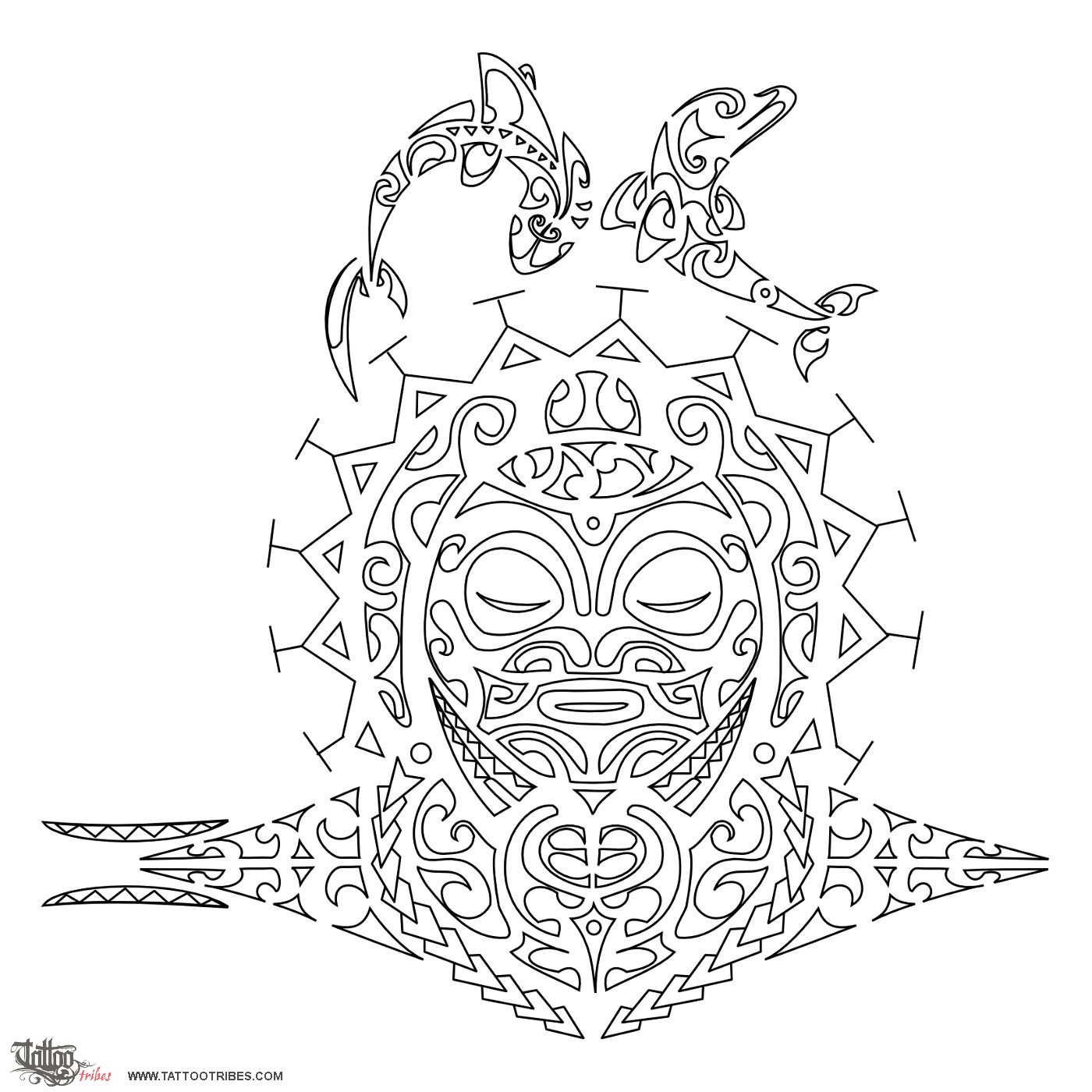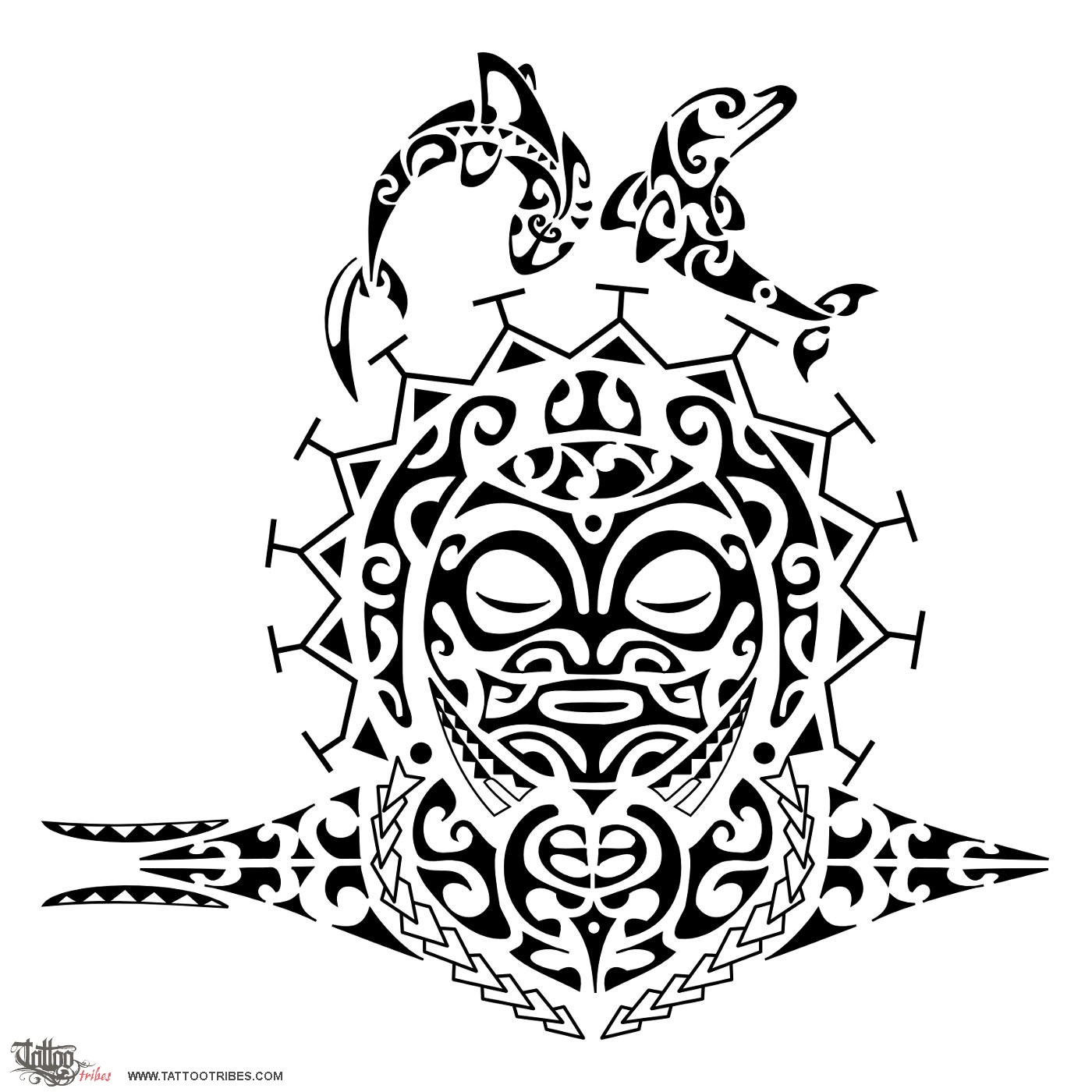 The central part is made of a turtle surrounded by a sun, to symbolize joy and family. The tiki on the shell symbolizes protection against any adversity (moray eels) and just above it are the stylized head letters of Andrea´s daughter.