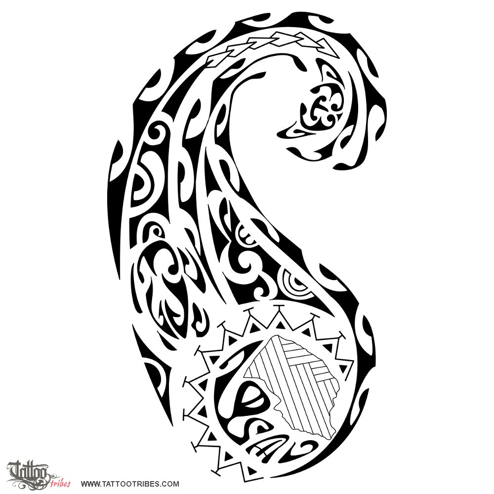 Waves are the main theme of this design, and they are joined to form a bigger wave ending in a manta (freedom and protection).