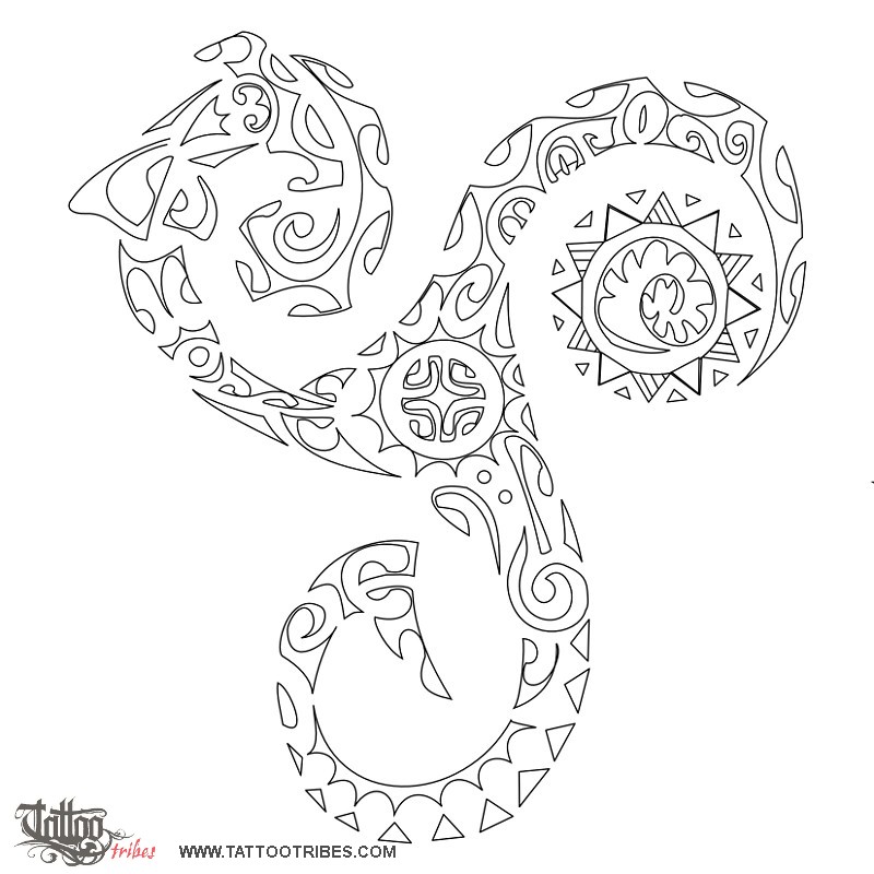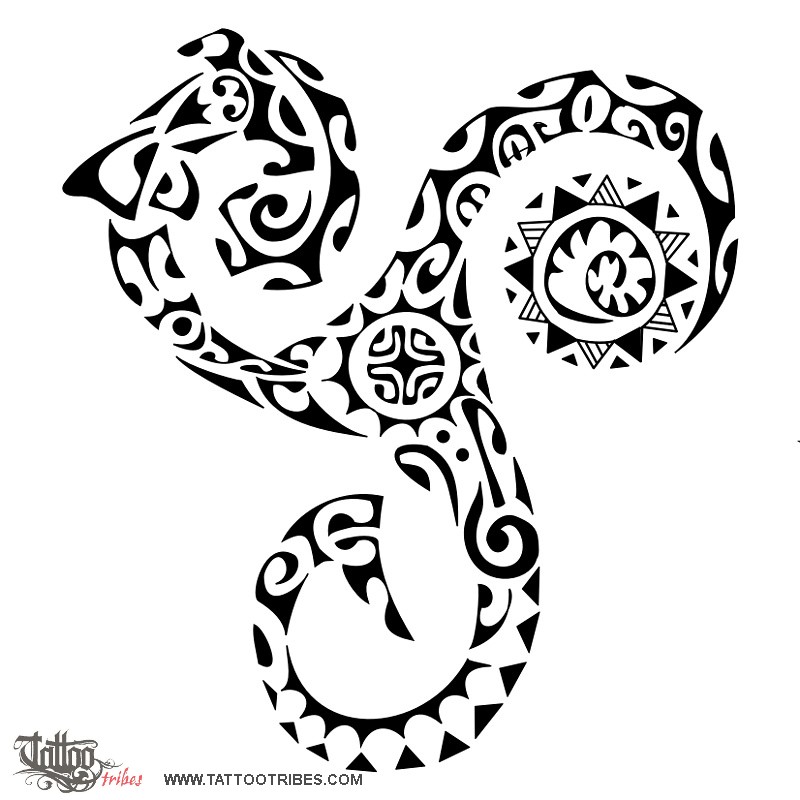 Polynesian tattoos explainedThe arms of the triskell contain traits of Enrico, who requested this design, representing some aspects of him that join in the center representing his balance: an arm has waves, a koru and a hammerhead shark to symbolize determination in facing changes and new beginnings; a second arm features a sun with a shell on its inside (love, shelter), to symbolize his passionality in love nd joyfulness towards friends and life, with a tiki protecting every aspect of them; the third arm contains a bass clef and a treble clef to symbolize his passion for music, and its general shape recalls that of a fish hook as a wish for prosperity. The shark teeth motif stands for strength and adaptability.