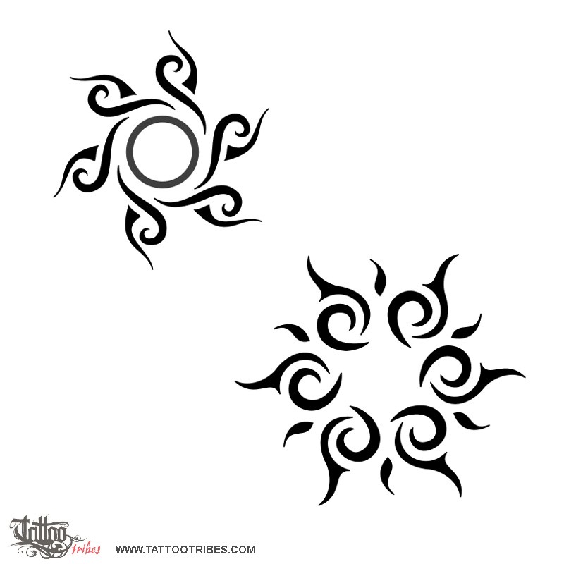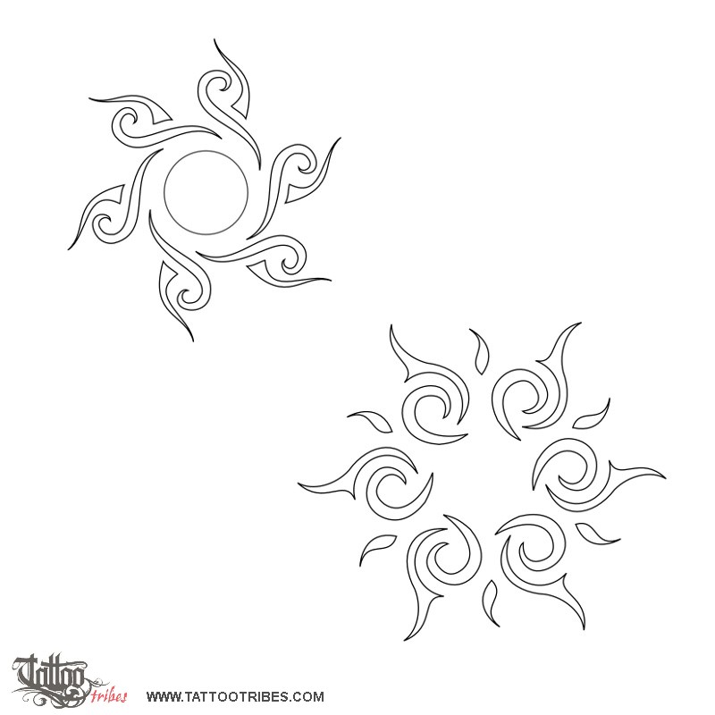 A stylized tribal sun (here in two versions) was requested by Lisa.