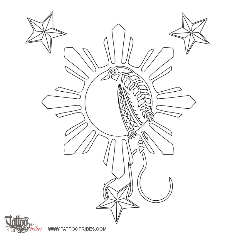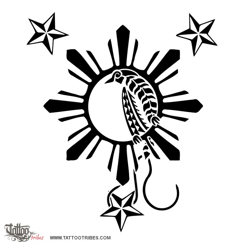 We decided to place the bird of paradise on the inside of the sun as if it was perched on a branch, and we composed it using traditional tribal Filipino motifs.