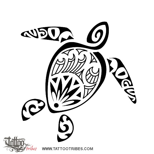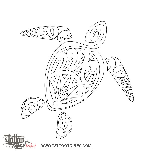 The front flippers are tiki to protect the family from every side, with fish hooks (prosperity and wealth).