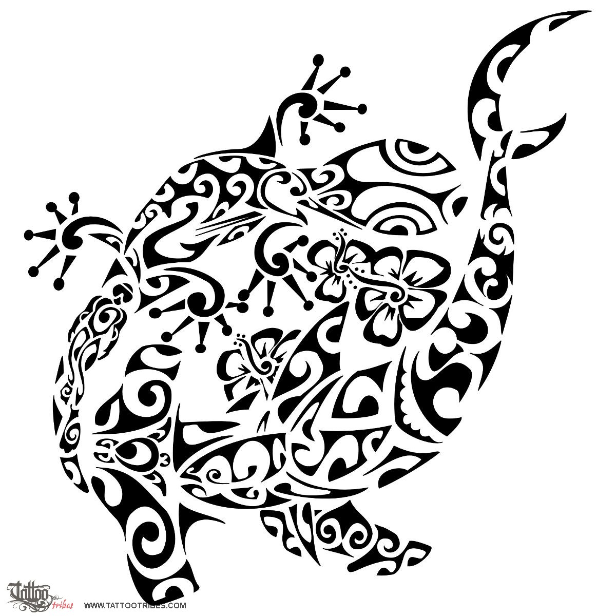The gecko includes on the inside the shapes of a scuba diver, a marlin (sharpness, speed) and a stylized seagull (freedom, safe return) in the head, koru (new start) in the legs and a fish hook (abundance, prosperity) inside the body.