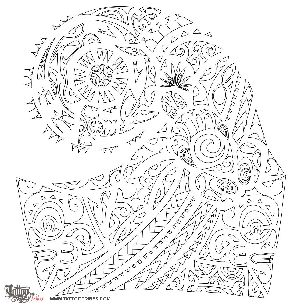 This tattoo for arm and pectoral muscle was requested by Vincenzo and it´s centered on family and protection. On the shoulder we placed a turtle as a symbol of family, including on the shelll a maorigram of the letters V and M, and a koru to symbolize his son, with two tiki eyes on his sides for protection.