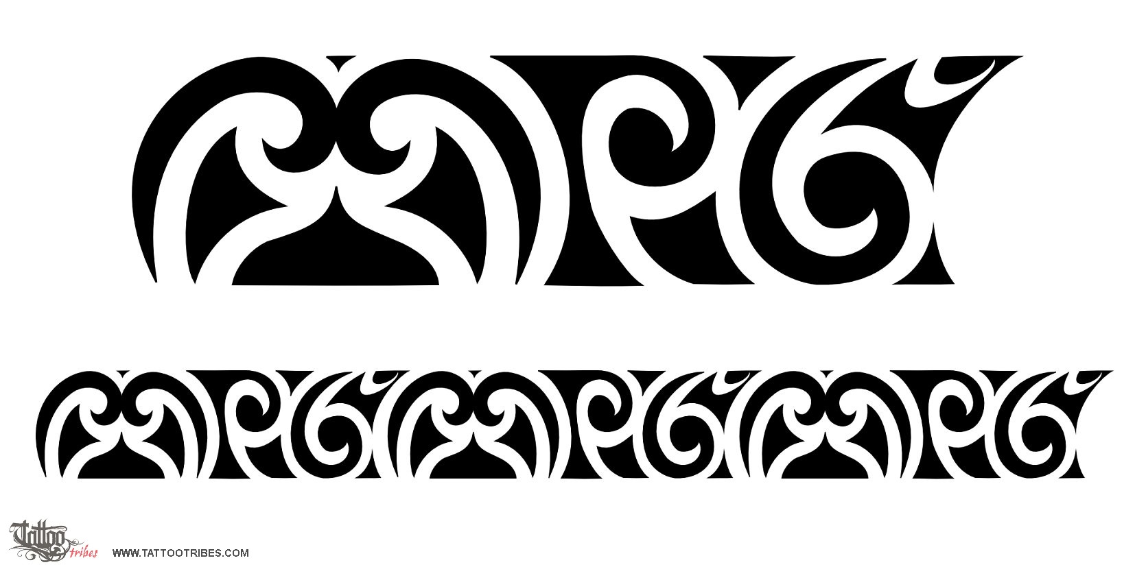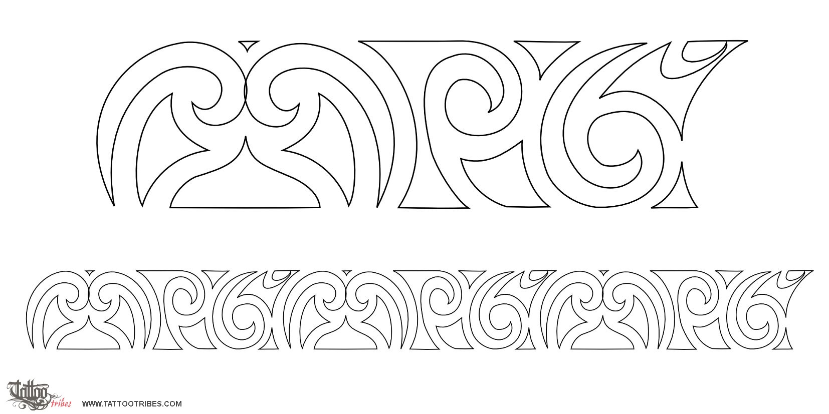 Polynesian tattoos explainedMassimo requested a Maori styled tribal armband with hidden inside the pattern the first letters of his family names (M,P,G). Look at the drawing now. The armband is made by repeating the basic pattern which includes the three letters, with some smaller filling patterns as joinings between the letters.