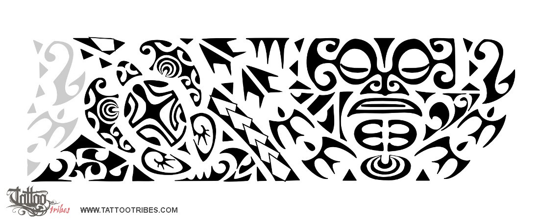 Other elements composing the tattoo are spear heads (the warrior, courage and strength), fish (abundance, prosperity) and shark teeth (adaptability, strength and protection).