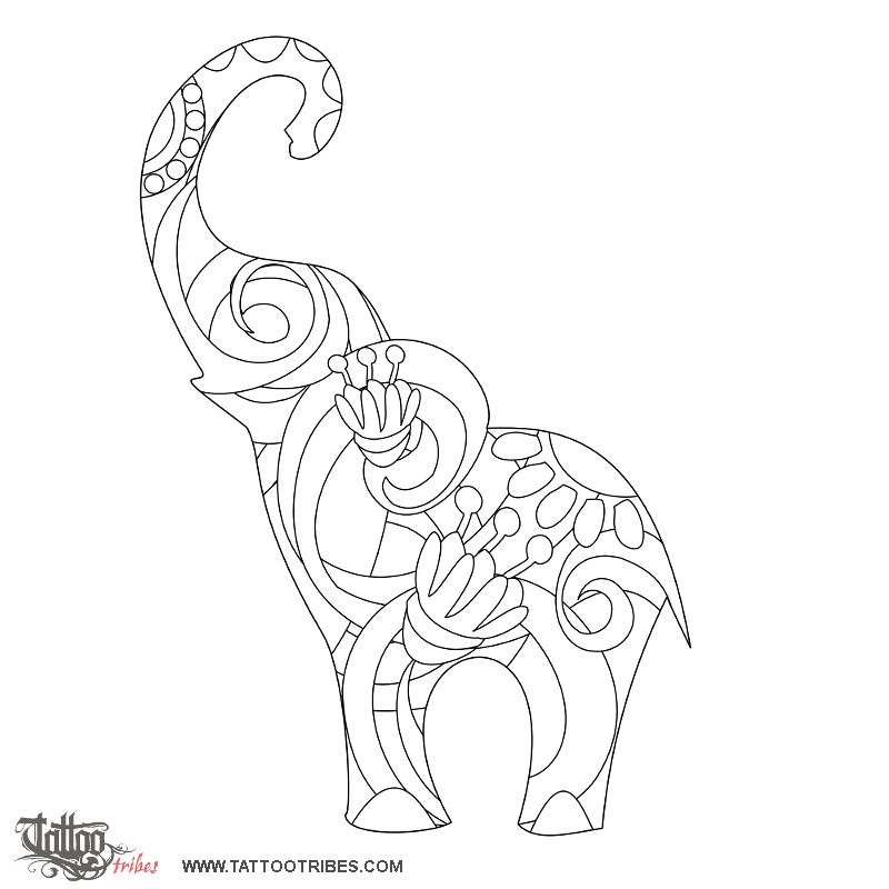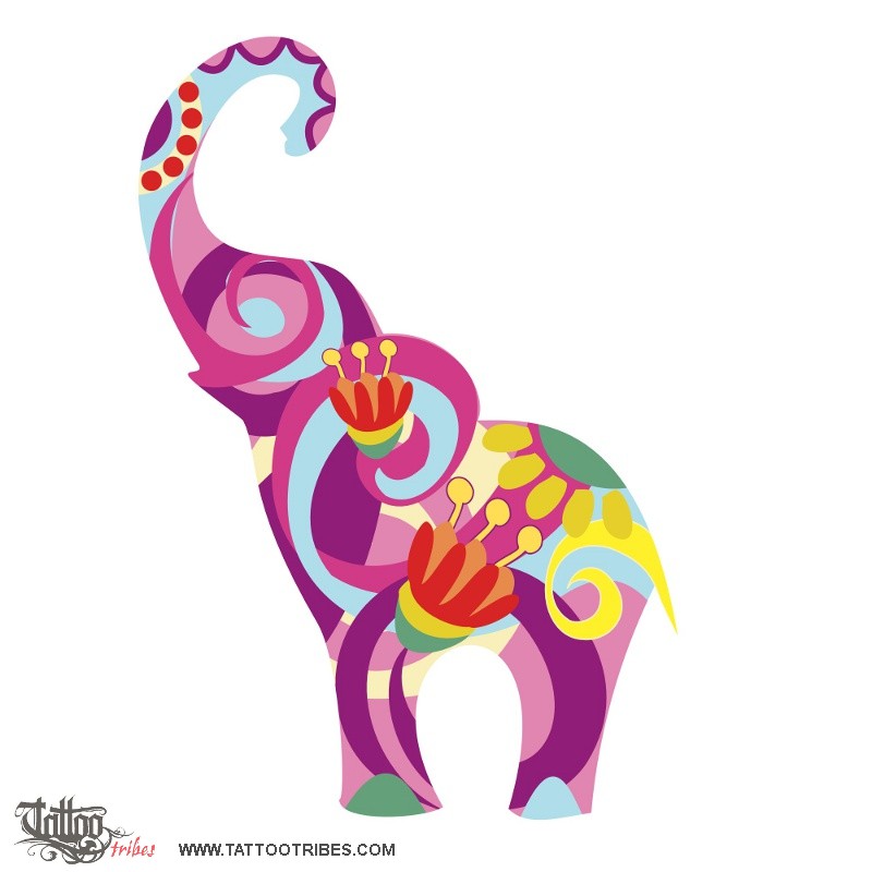 Polynesian tattoos explainedSammy Joe requested this tattoo of a brightly coloured elephant, made up by sveral patterns and with floral elements in it.