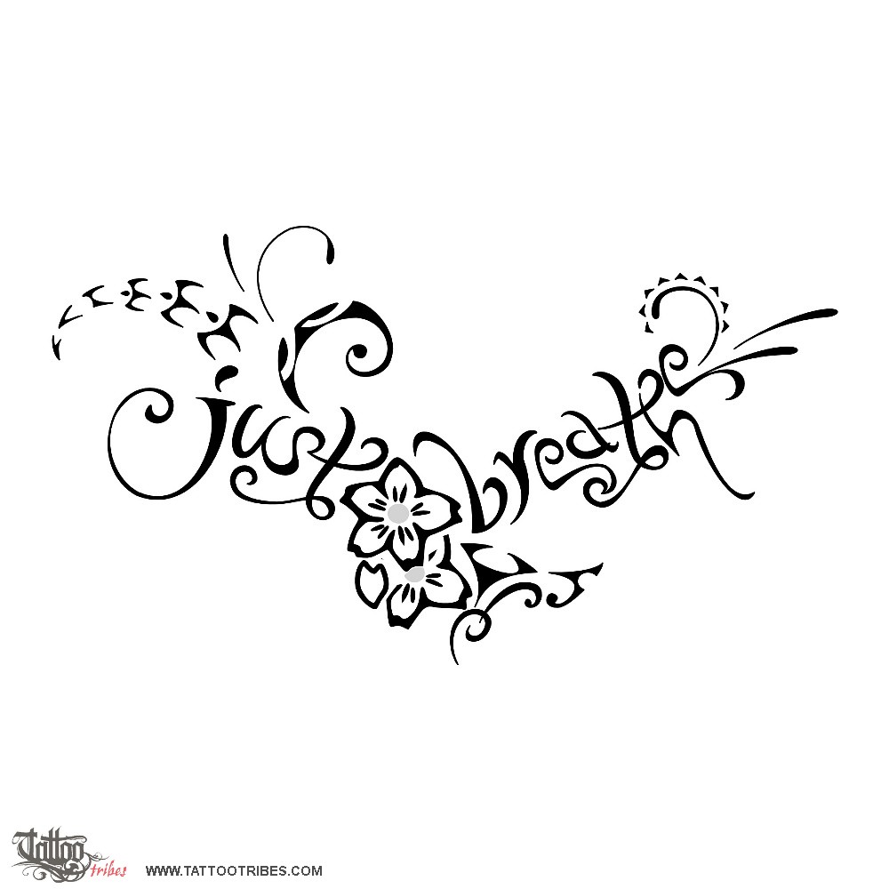 The words "Just breathe" of this tattoo are shaped to recall waves and they have waves integrating them too.
