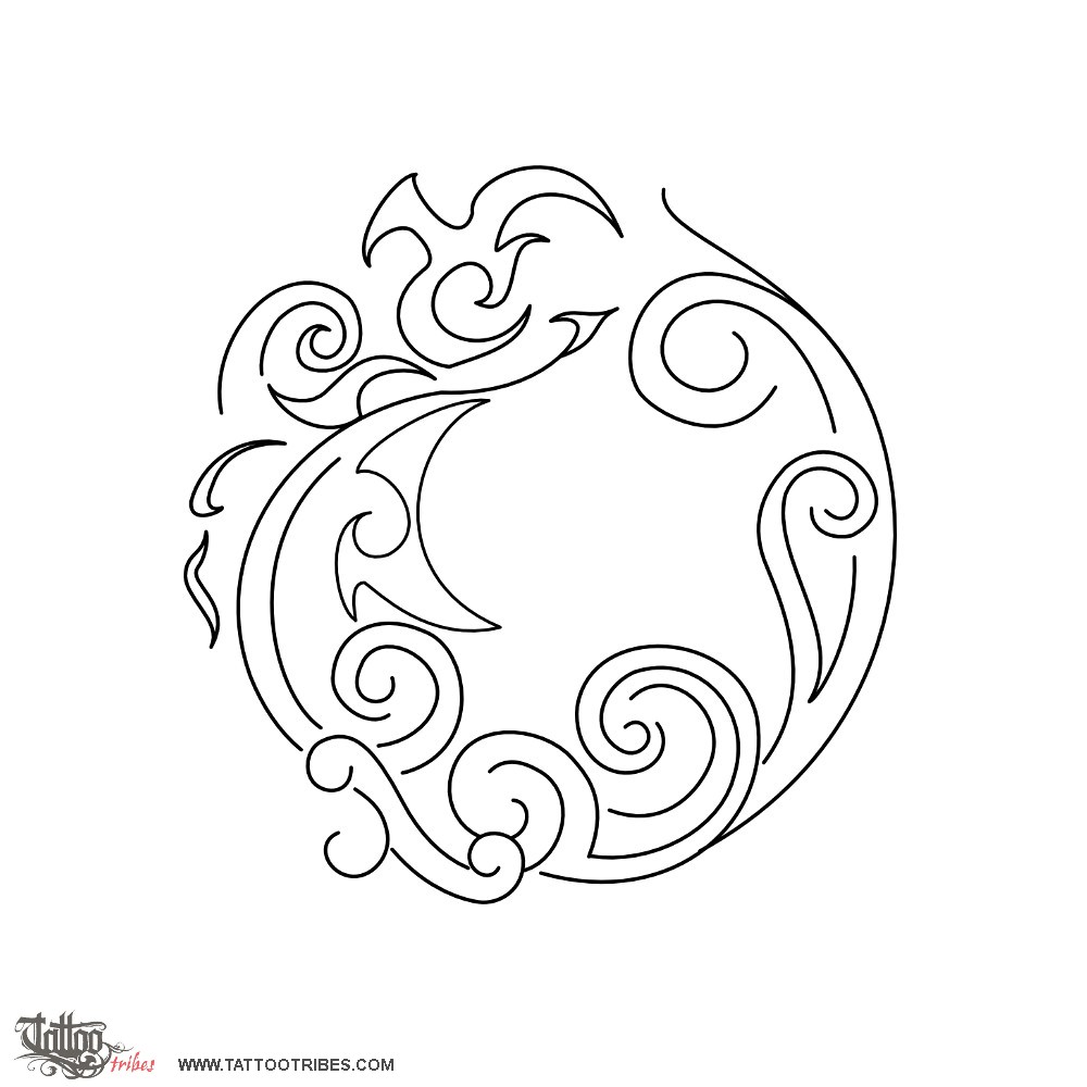 Darwyyn requested this tattoo of a circular stylized phoenix where fire and water, phoenix and waves, would meet.
