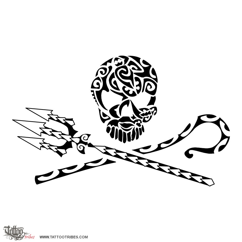 The Sea Shepherd logo, the jolly roger with crossed shepherd stick (here designed by waves) and Neptune´ trident (here made of spear heads), was redesigned with Polynesian composite tattoos in mind as requested by Joanne, joining several marine life animals to compose it, in addition to the dolphin and whale from the original logo.