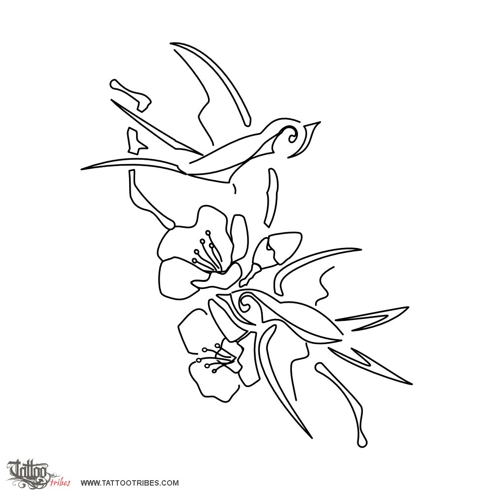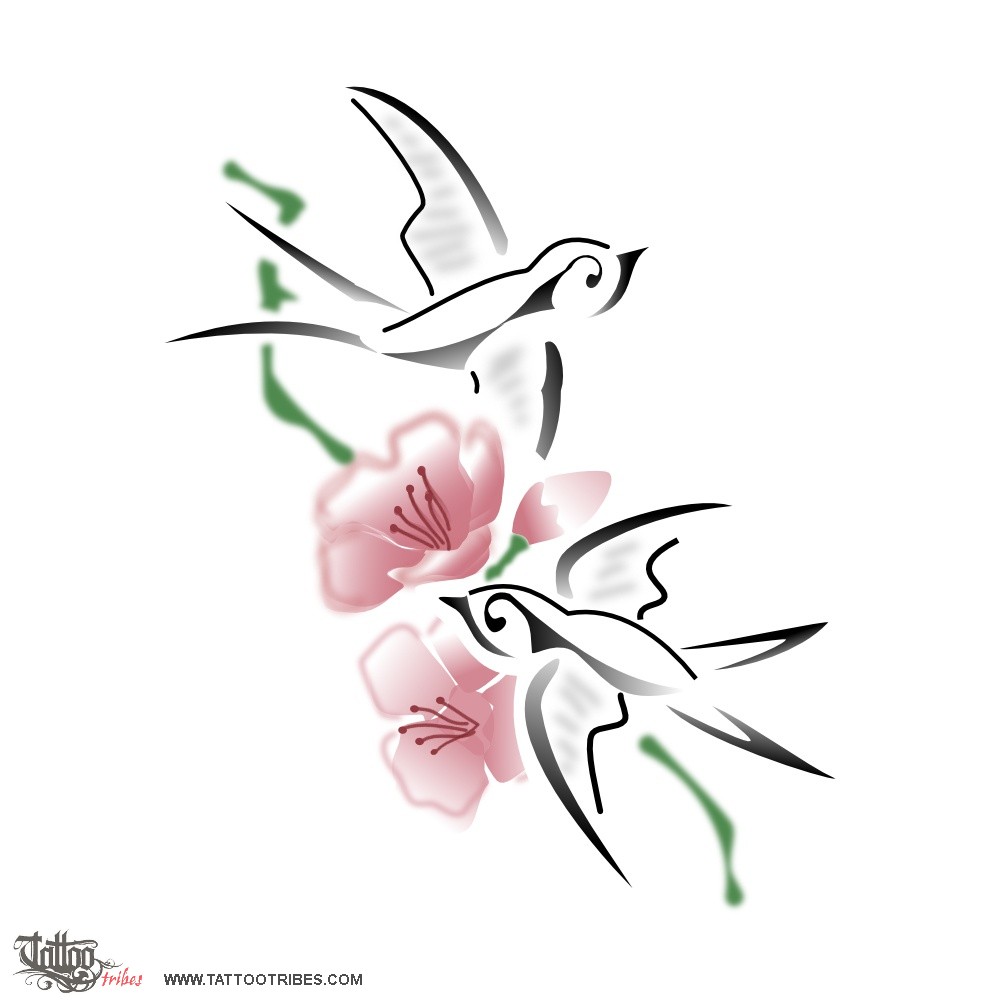 Silvia requested a small tattoo showing two flying swallows and peach flowers, to symbolize Spring, time of rebirth when the world wakes up to life once again.