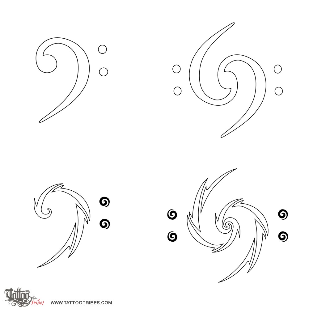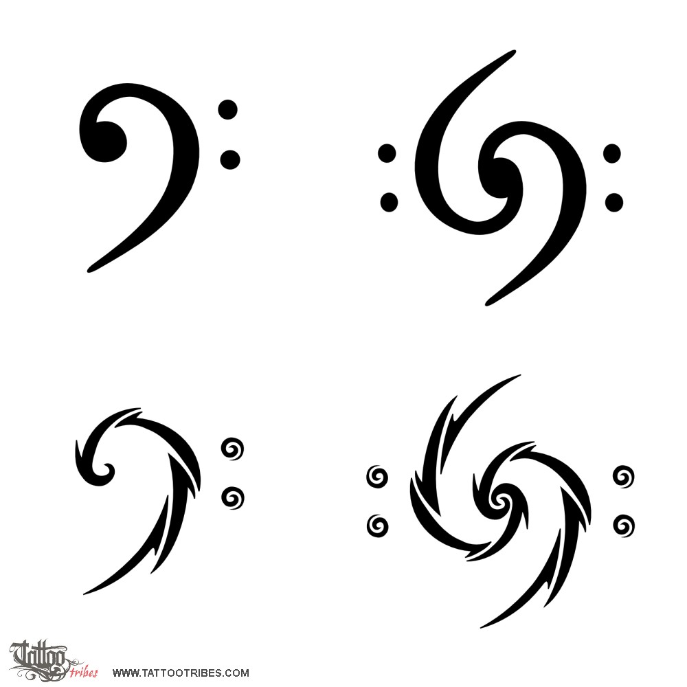 The bass cleff, or F key, is a conventional mark which fixes the position of the F note on the staff. It´s a stylized F and depending on its position it is called either baritone or base key, because lower instruments are often tuned on it. We prepared a "double", spiral shaped version as well, in plain and tribal flavour.