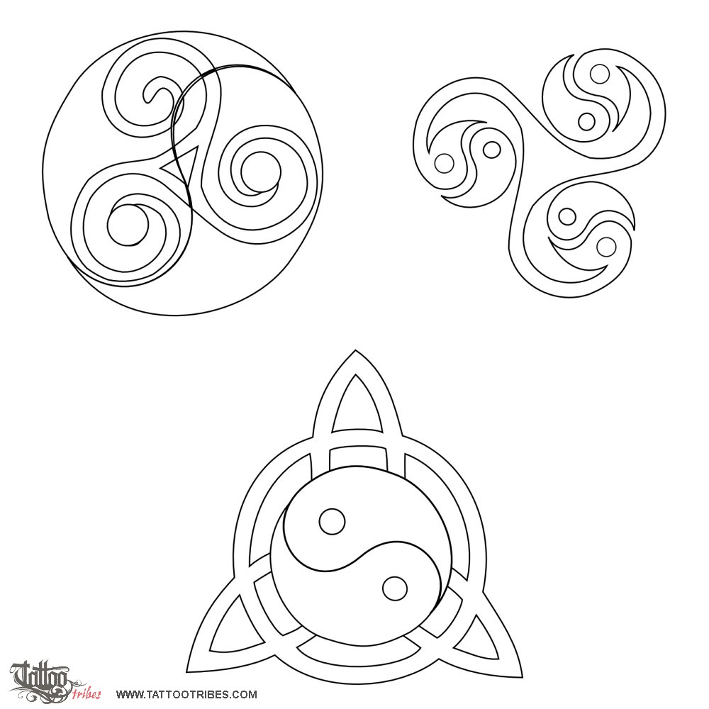 Laura requested a design which would blend the yin and yang symbol with a triskell or a triquetra.