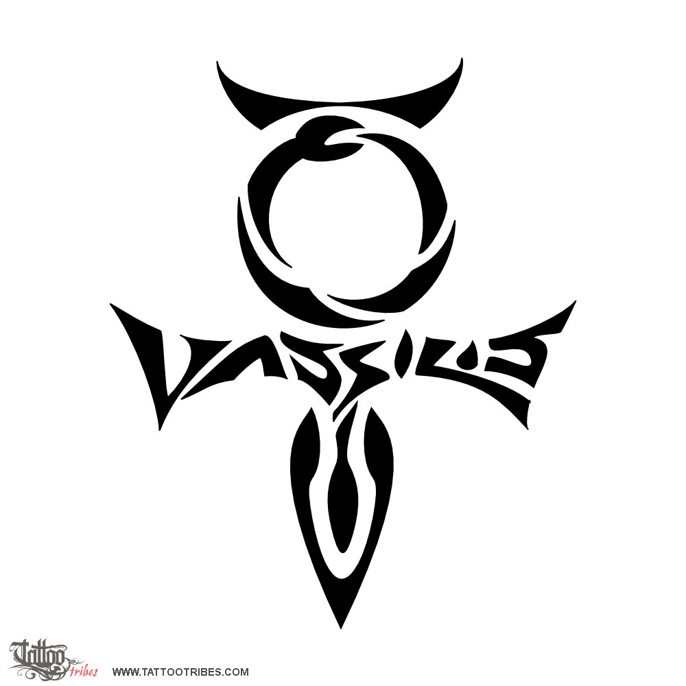 It includes here an ouroboros, symbolizing eternity, and the name Vassilis, while the lower part symbolizes union.