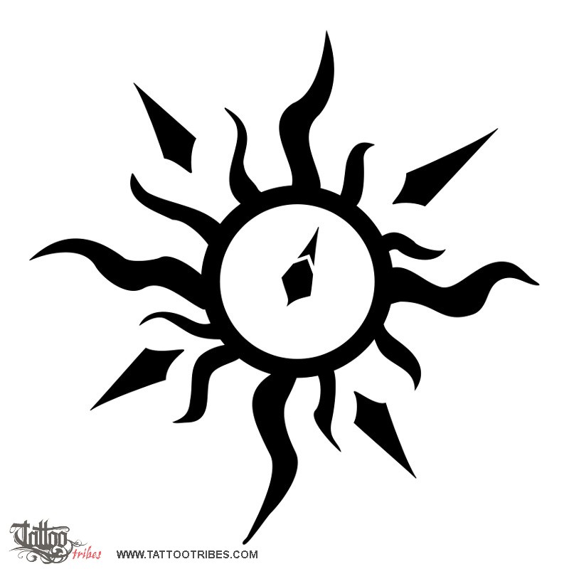 This tribal style tattoo that blends together sun and compass was requested by Fabio.