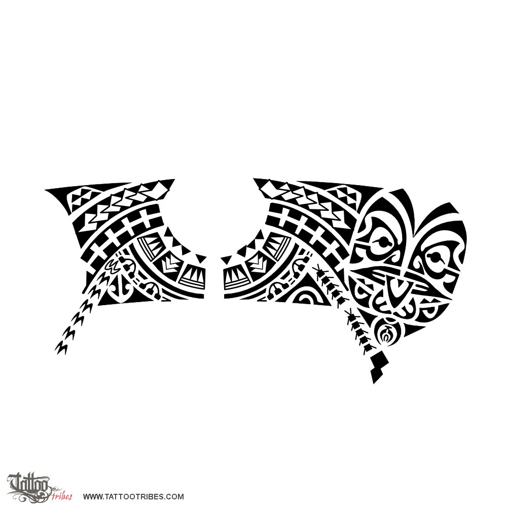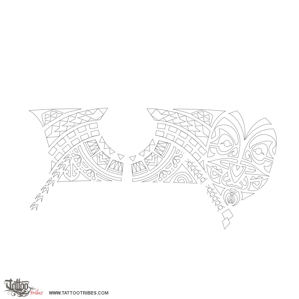 The hammerhead shark motif represents tenacity and strength while the upside down enata symbolize enemies defeated along the way.