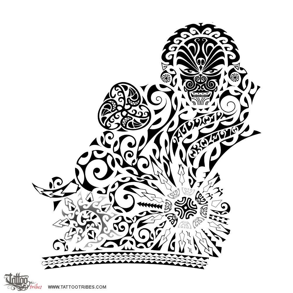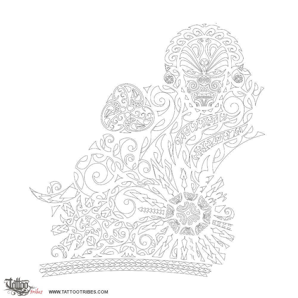 The upper half incorporates elements from several cultures, like the Celtic triskell and the Mayan glyph and warrior´s hair decoration, while the rest is Polynesian.