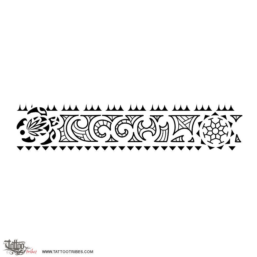 This armband tattoo was requested by Cristian and it includes in its center the letters of his family members, CGGOL, written as a maorigram.
