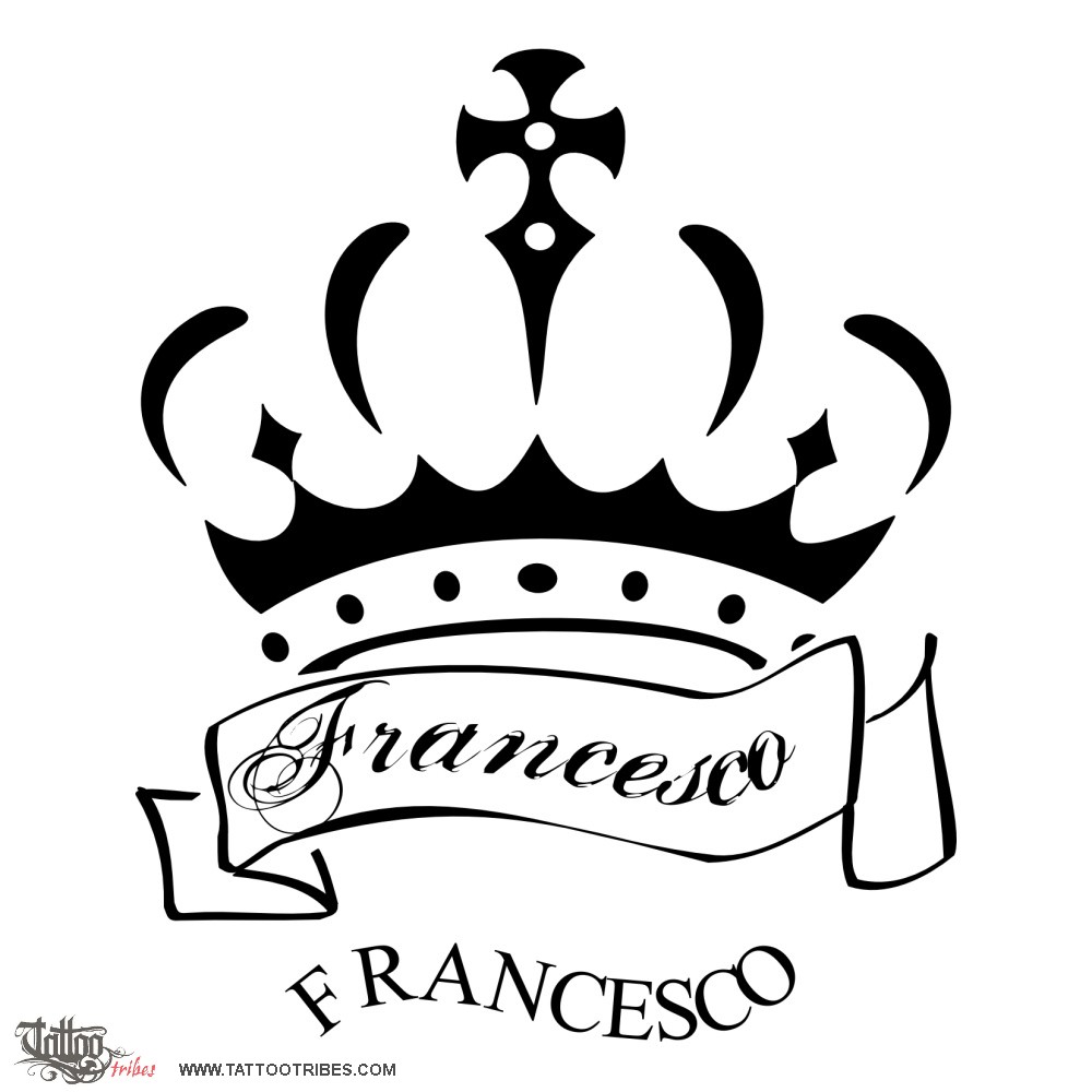 Francesco requested a very simple crown with a banner to contain his name. We chose a suggested font type, and placed in the hi-res version a second writing in Roman font.