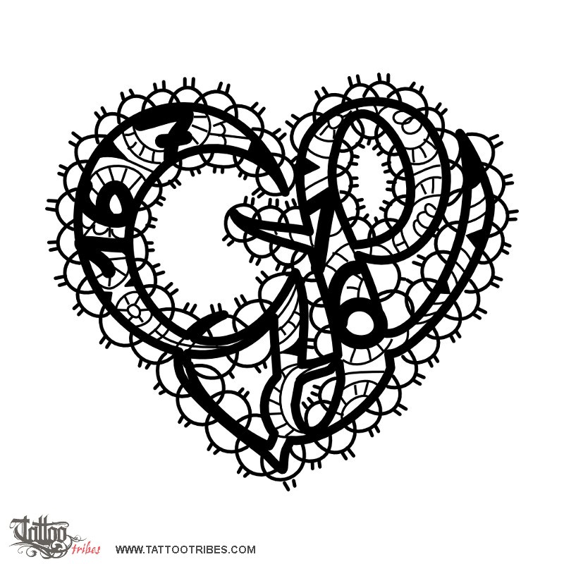 This heart shaped tattoo is made by the union of the letters G and L.