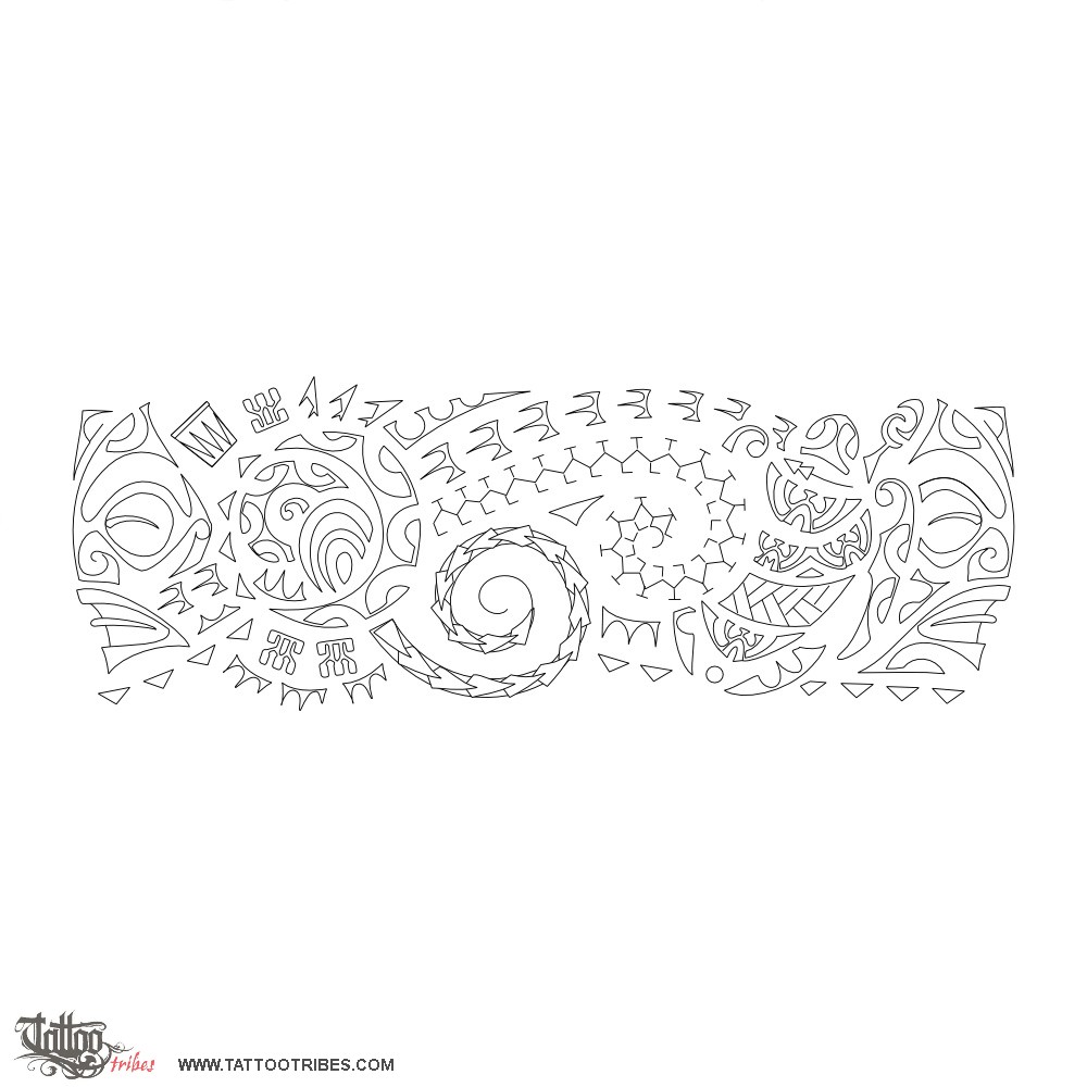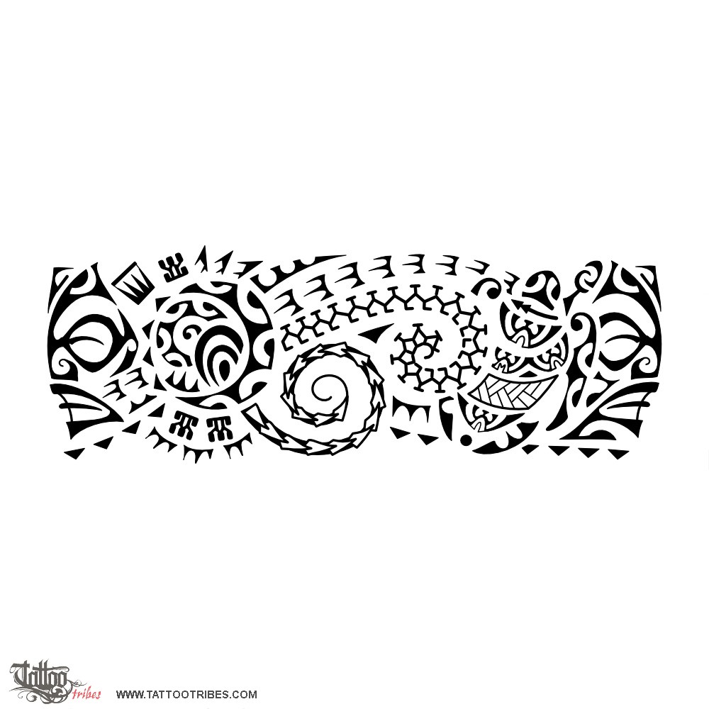 Sun rays cross the whole armband and they include a row of birds for the voyages that gave him a new perspective, the ani ata motif is for his ancestors, who connect him to his land, and spear heads symbolize the warrior.